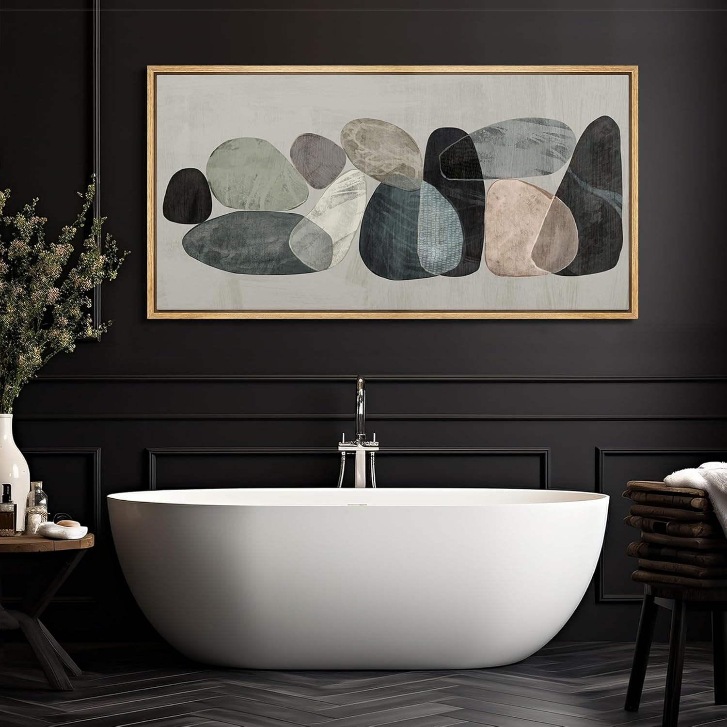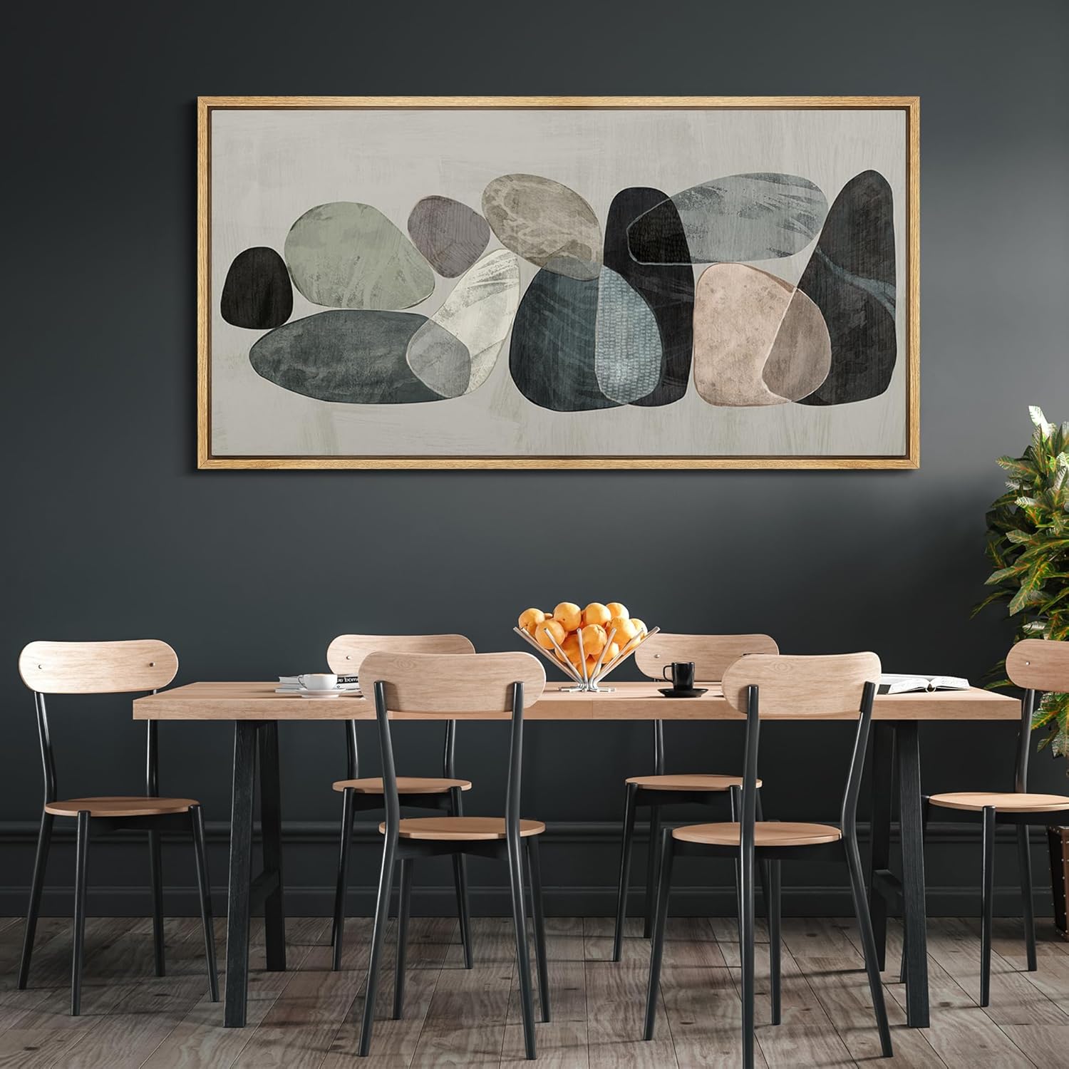 MUDECOR Extra Large Framed Canvas Print Wall Art Abstract Elegance Contemporary Stone Shapes Illustrations Antique Retro Fine Art Illustrations Decorative Colorful for Bedroom - 60"x30"