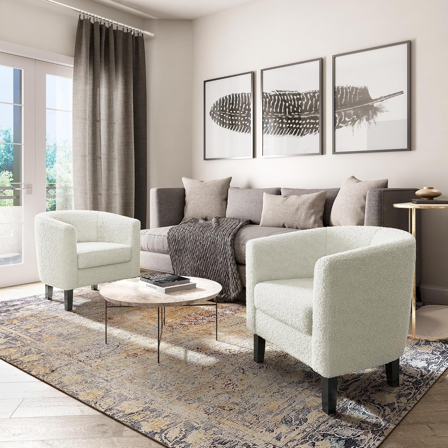 BELLEZE Accent Barrel Chair, Linen Round Chair Club Tub Sofa Corner Chair with Flared Legs and Cozy Soft Padding for Living Room Bedroom Waiting Room - Teddy White