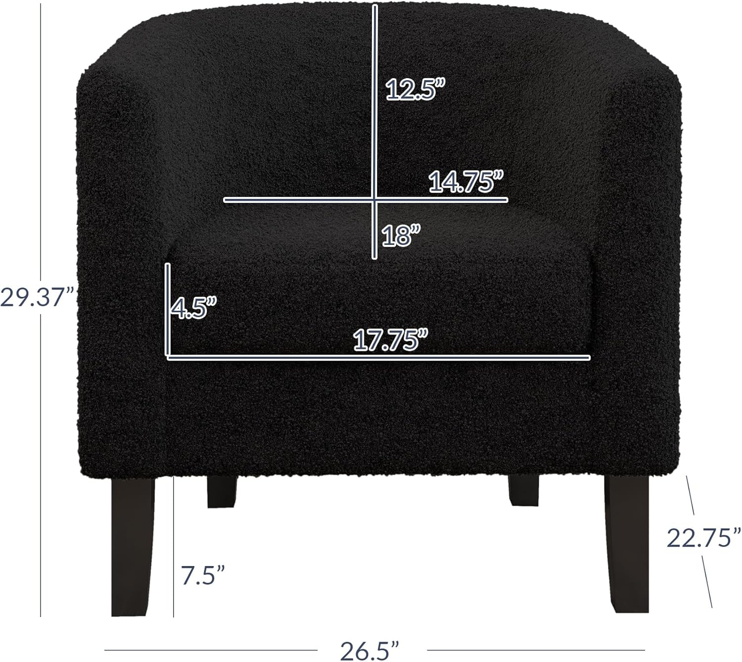 BELLEZE Living Room Chair, Teddy Polyester Accent Barrel Chair, Club Tub Sofa Chair for Bedroom, Corner Chair with Flared Legs and Cozy Soft Padding - Highland (Teddy Black)