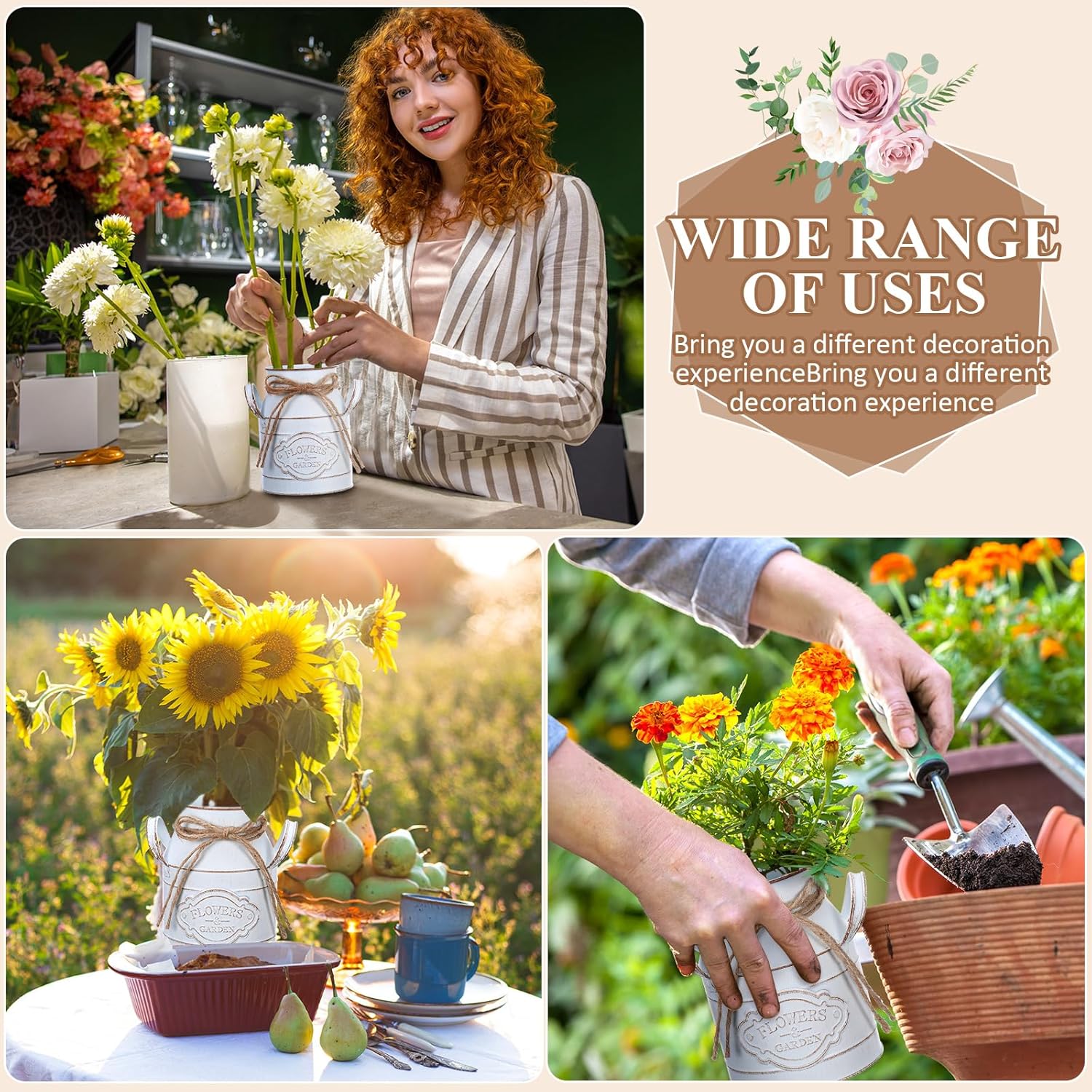 - Versatility Meets Vintage Design: with its rustic and vintage design, the mini milk jug vase boasts a classic style that is widely applicable; They can function as elegant centerpieces at a dining table, dining table, party or wedding celebration, and proper pieces for indoor, outdoors, home, office, business, and holiday parties