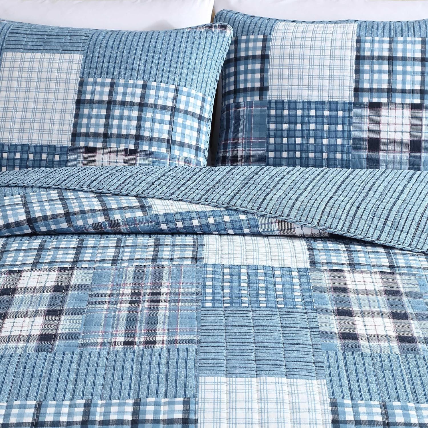 Eddie Bauer - Twin Quilt Set, Reversible Cotton Bedding with Matching Sham, Patchwork Plaid Home Decor (Hawthorne Blue, Twin)