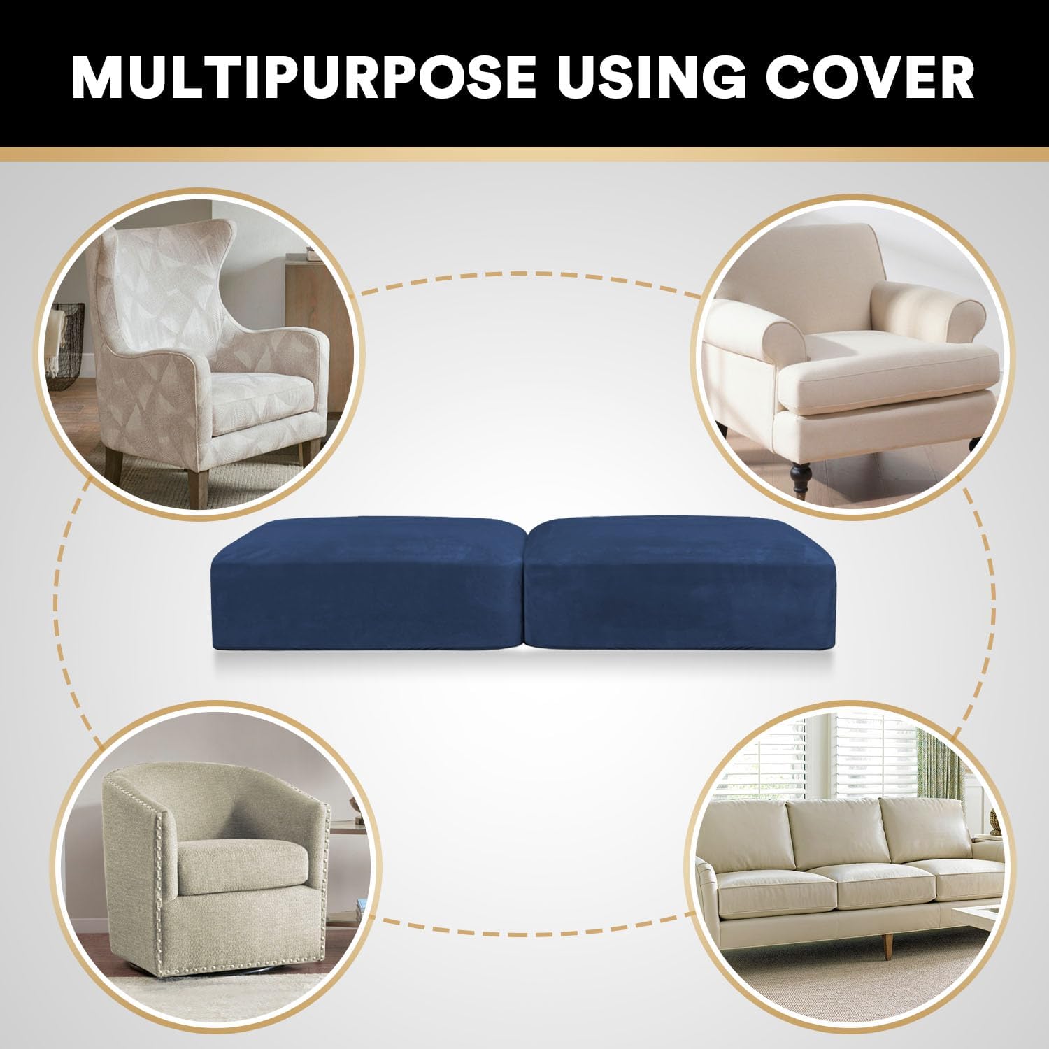 PrinceDeco Velvet Couch Cushion Cover Soft Stretch Cushion Slipcover for Chair Loveseat Sofa Cushion Furniture Protector Seat Cushion Sofa Cover (2 Piece Large Sofa Cushion Covers, Navy)
