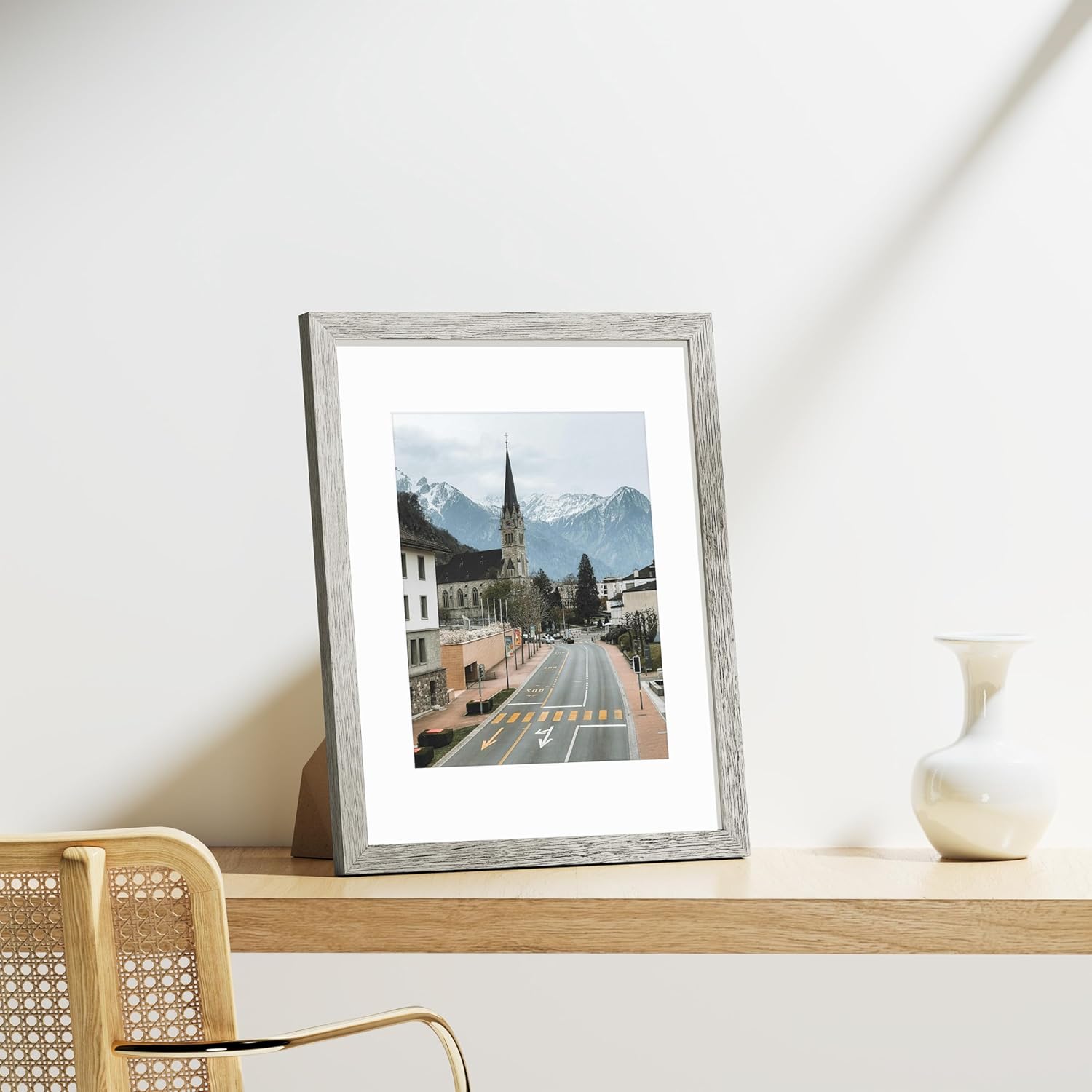 Vittanly 11x14 Picture Frames Set of 9, Shatter Resistant Plexiglass, Display 8x10 Pictures with Mat or 11x14 without Mat, Photo Frames for Wall or Tabletop, Engineered Wood, Grey