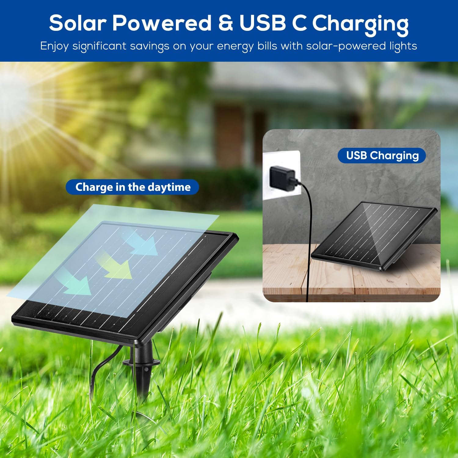 - 【High-Efficient & High-Capacity Battery】ZYAN solar panels Conversion Rate and Charging Efficiency is higher 20% than other solar landscape lights. Whatever sunny, rainy or snowy, brighting your garden all year round. Compared with other solar spotlights only with 3000mAh batteries, ZYAN features a high-capacity 6000mAh battery. Under the same situation, brighting time is longer 100% than others.