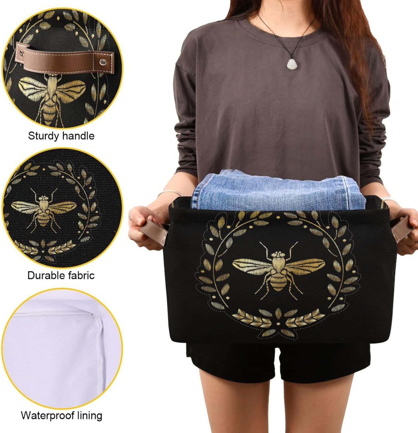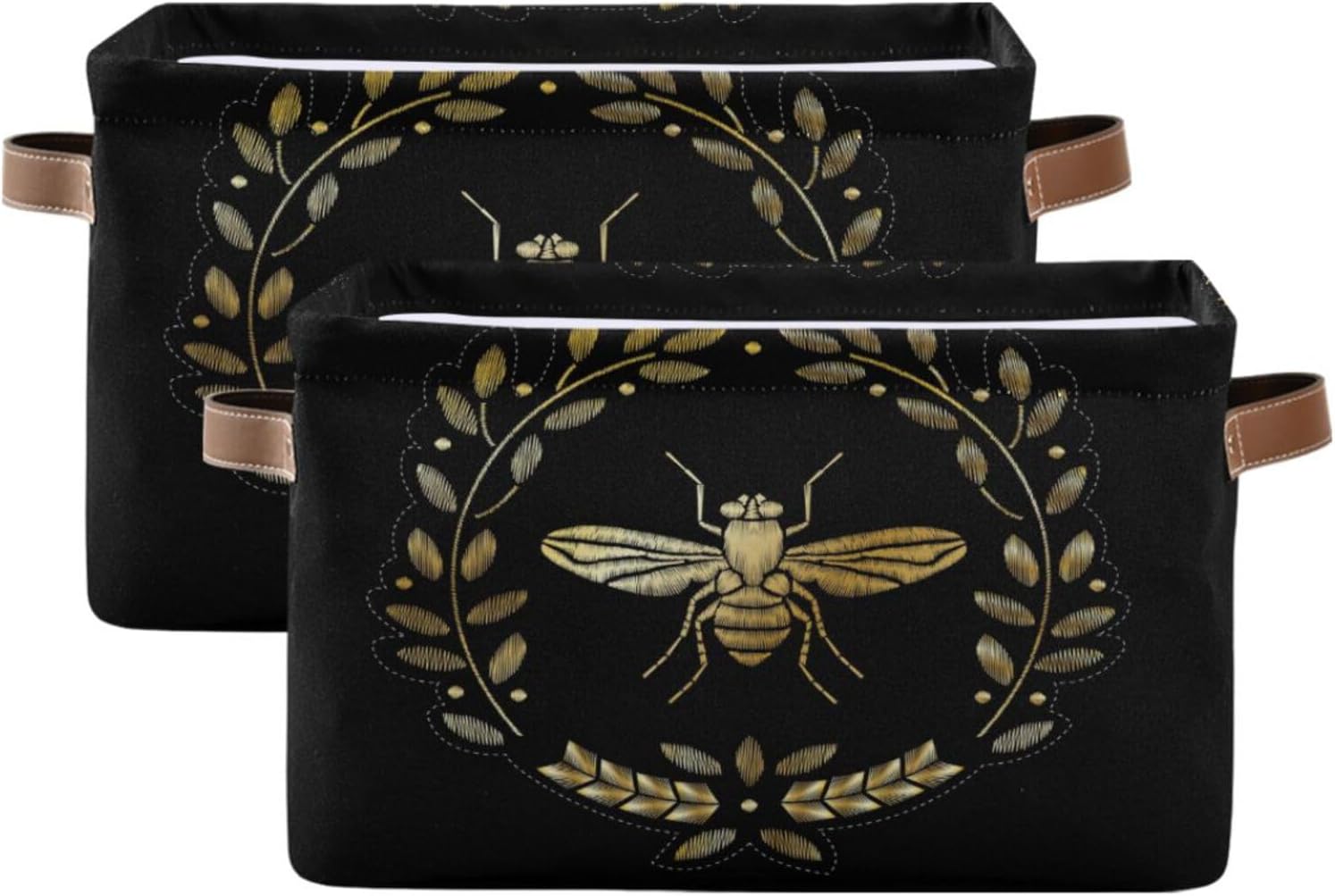 susiyo Storage Baskets for Shelves Organizer Baskets with Metal Frame Closet Storage Bins Fabric Bins Cubes with PU Handles for Organizing Shelf Nursery Toys 2 PACK,Gold Bee Floral