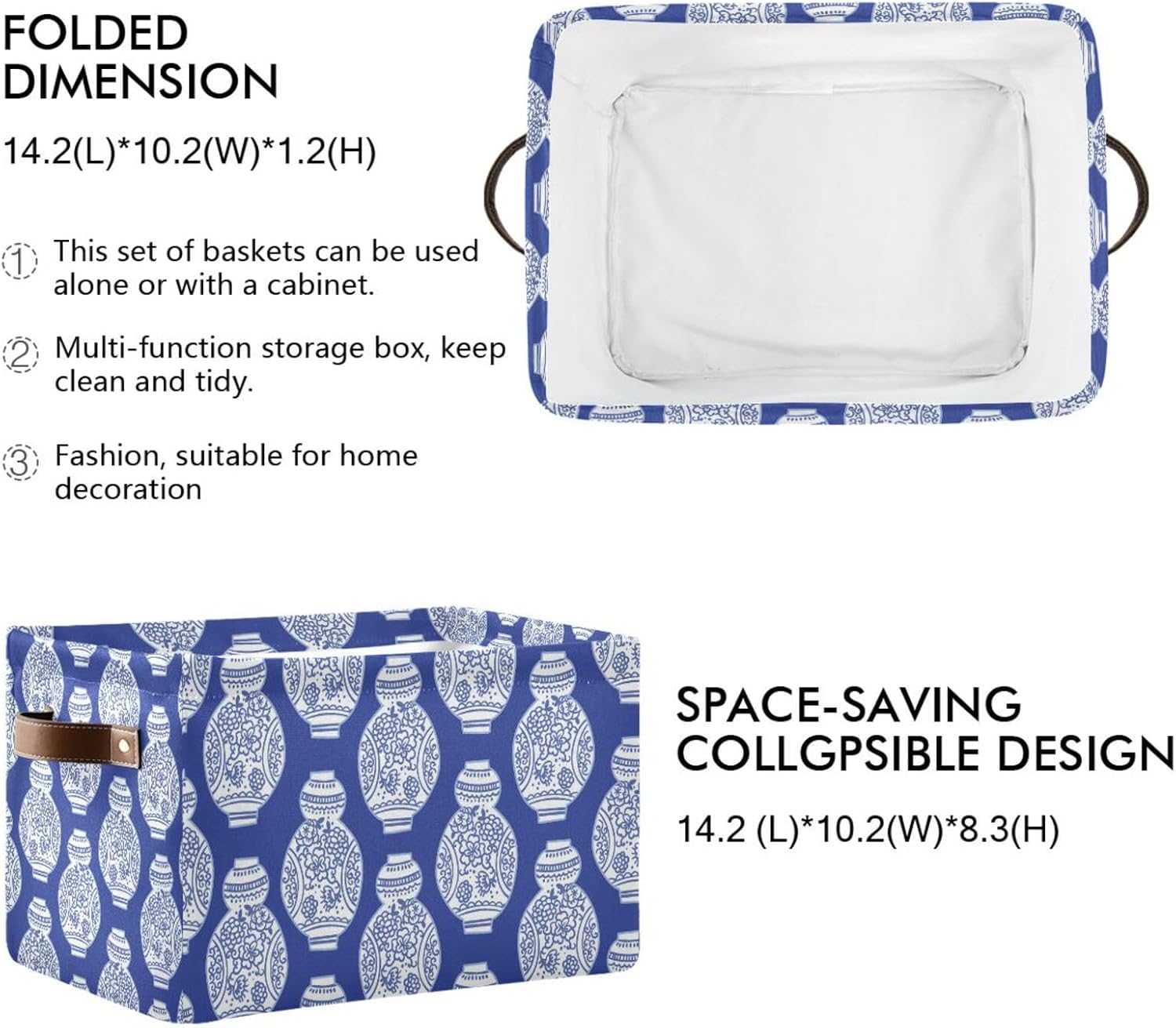 susiyo Storage Baskets for Shelves Organizer Baskets with Metal Frame Closet Storage Bins Fabric Bins Cubes with PU Handles for Organizing Shelf Nursery Toys 1 PACK,Blue Chinoiserie Vases