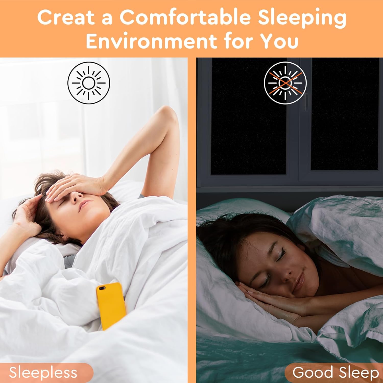 - TOTAL BLACKOUT WINDOW FILM: This window film effectively blocks out 100% UV rays and sun light, protects your skin from sun exposure, prevents your furniture from fading, and keep a comfortable home environment. Black window film offers a high level of privacy and provide double-sided privacy protection at all day, makes your room in completely dark as night, perfect for those who need daytime sleep and complete privacy