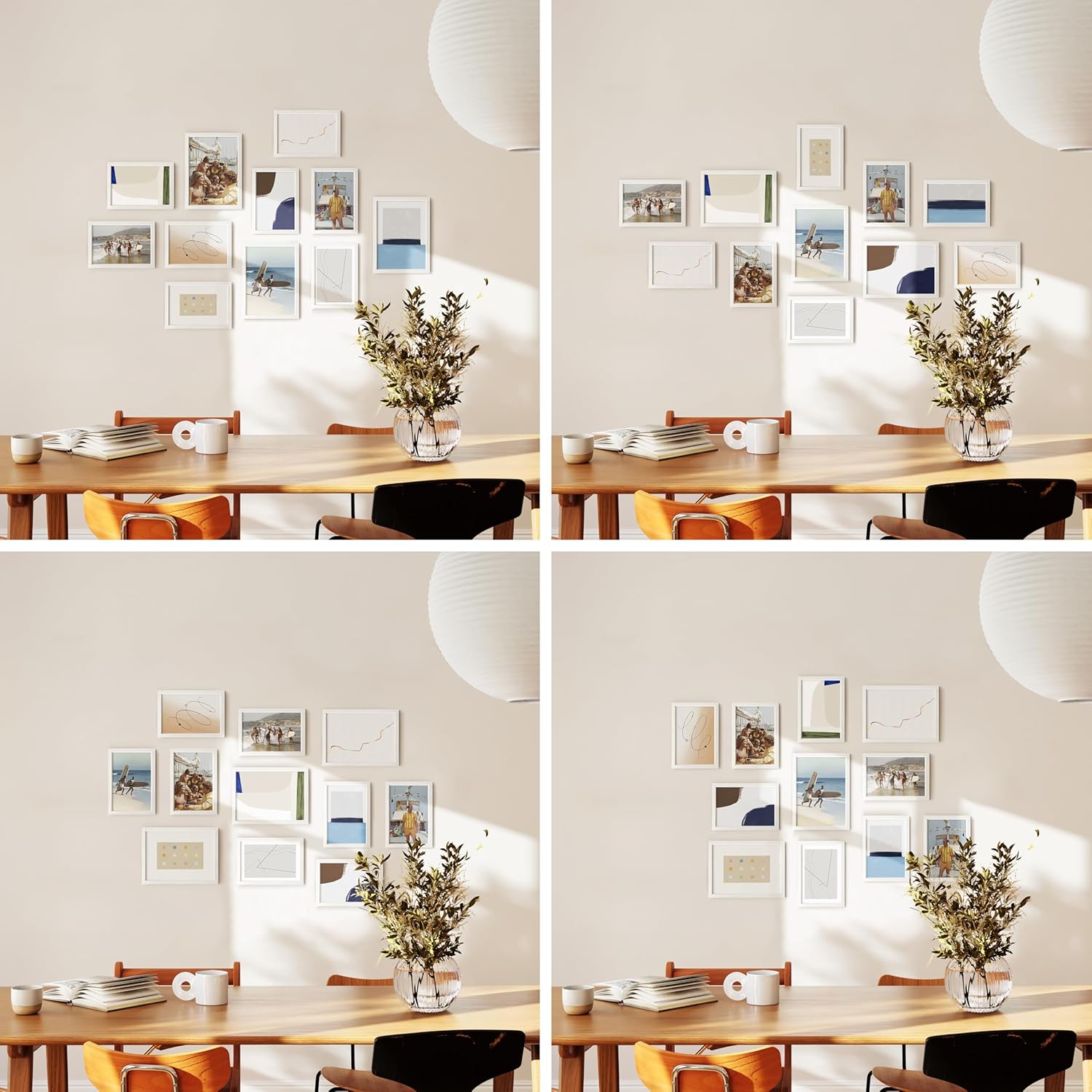 - WHITE PHOTO FRAMES: The assorted frames showcases the detail of the oak wood, with its unique grain patterns and rich hues. Our white collage picture frames will enhance your photographs and artwork, while the durable construction ensures your memories are exhibited for years to come. Embrace the seamless blend of natural materials and contemporary design with our white picture frame set, bringing a touch of modernity to your cherished moments