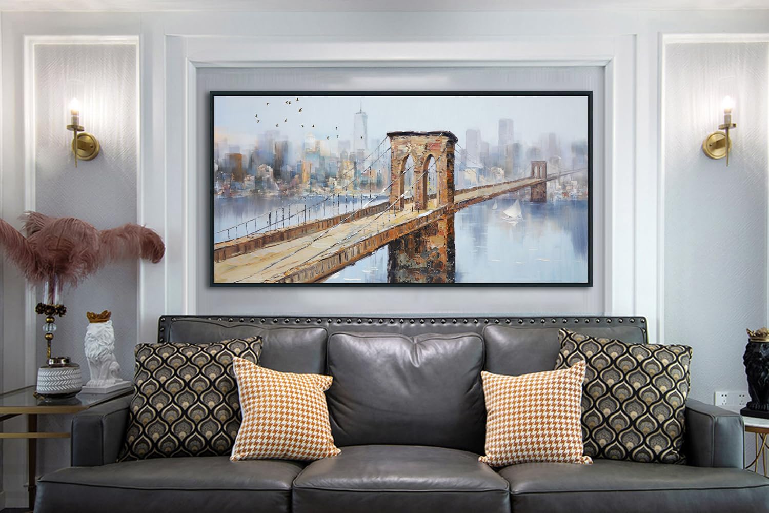 - ๐ฐBrooklyn Bridge Wall Art Size: 40inx20in(100cmx50cm), wooden framed and hook mounted ready to hang. It's our original design with hand-painted textured embellishment.