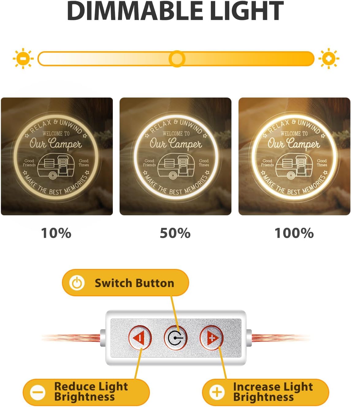 - 🍾【Perfect Wall Decor】Use this camper neon sign in your party to create a unique atmosphere and make a wonderful addition. It's a really nice mood light and it definitely adds flavor to an otherwise plain space. This led sign can also be used to decorate many scenes, such as garage, back yard, patio, poolside, bedroom, home pub, game room, man cave, BBQ party and so on.