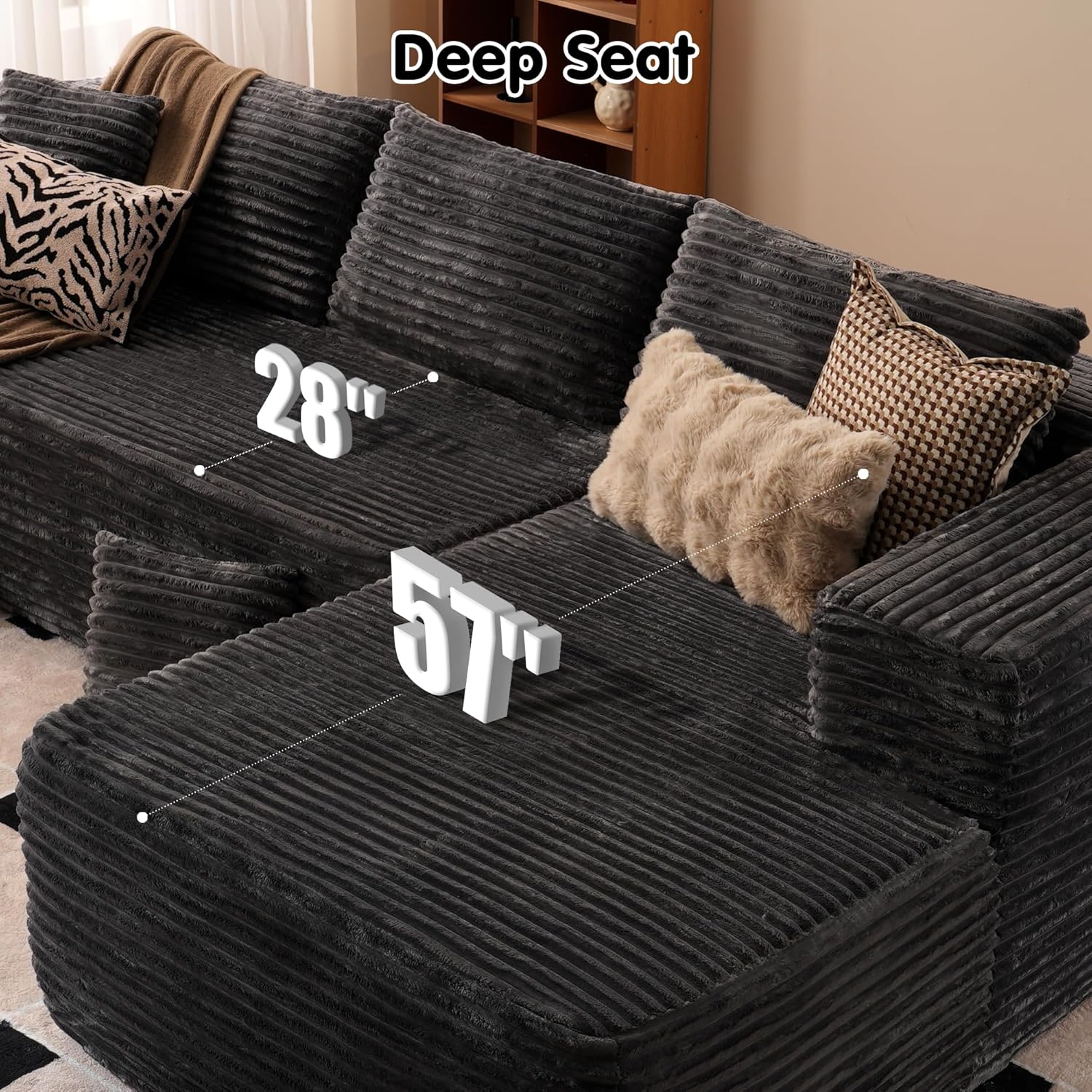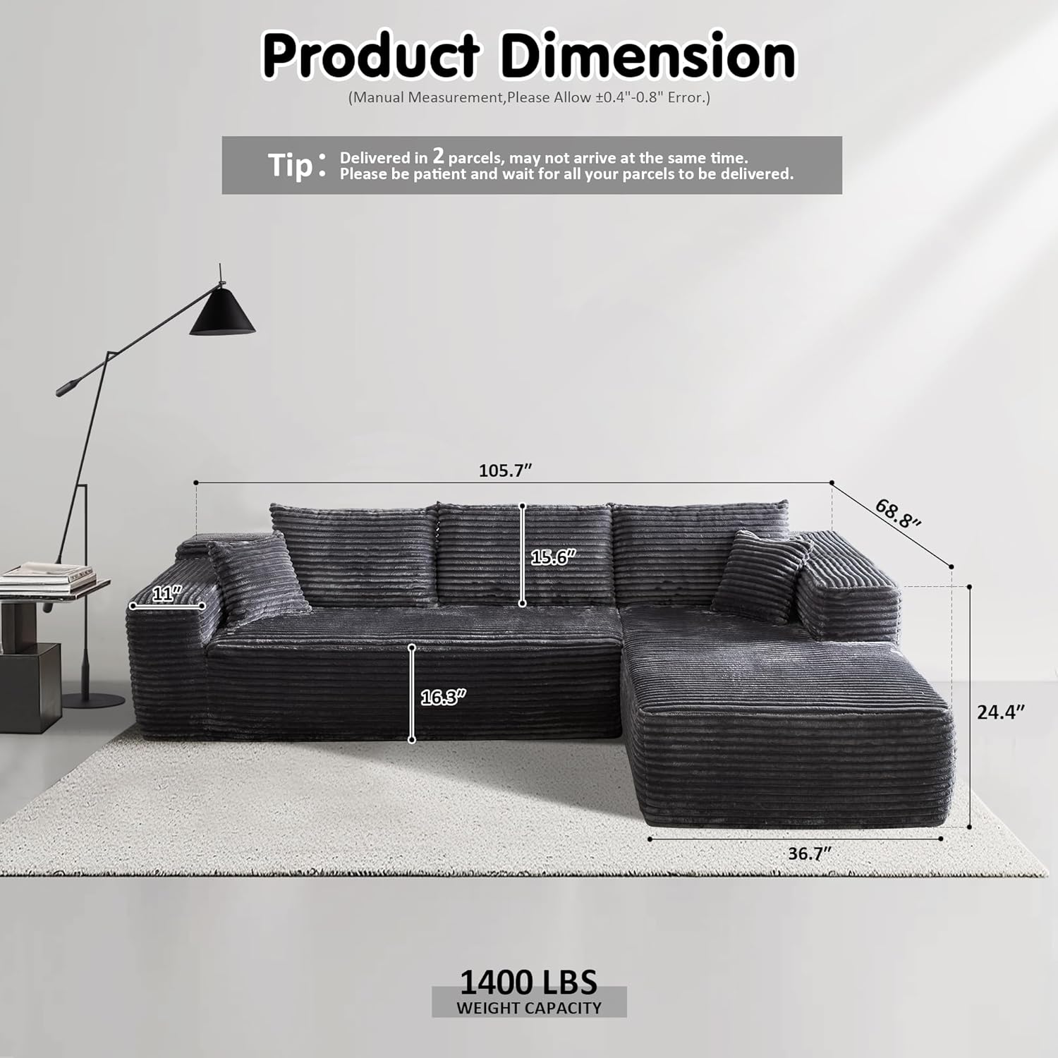 ovios 104" Cloud Sectional Couch with L-Shape Chaise,Modern Modular Sofa with Deep Seat, Upholstered Couches for Living Room Bedroom,No Assembly Required, Grey (Plush Corduroy Fabric)