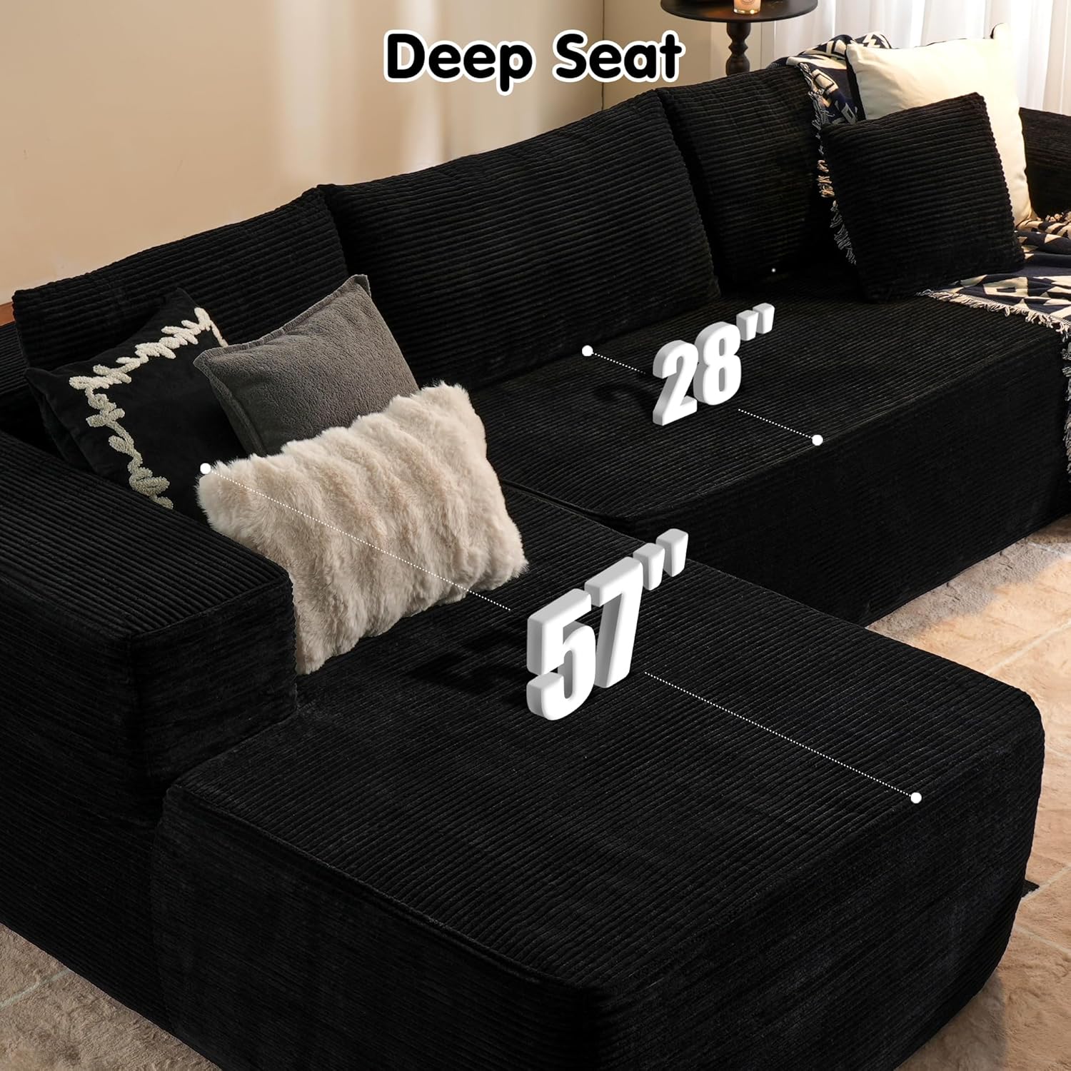 ovios 104" Cloud Sectional Couch with L-Shape Chaise,Modern Modular Sofa with Deep Seat, Upholstered Couches for Living Room Bedroom,No Assembly Required, Black (Corduroy Fabric)