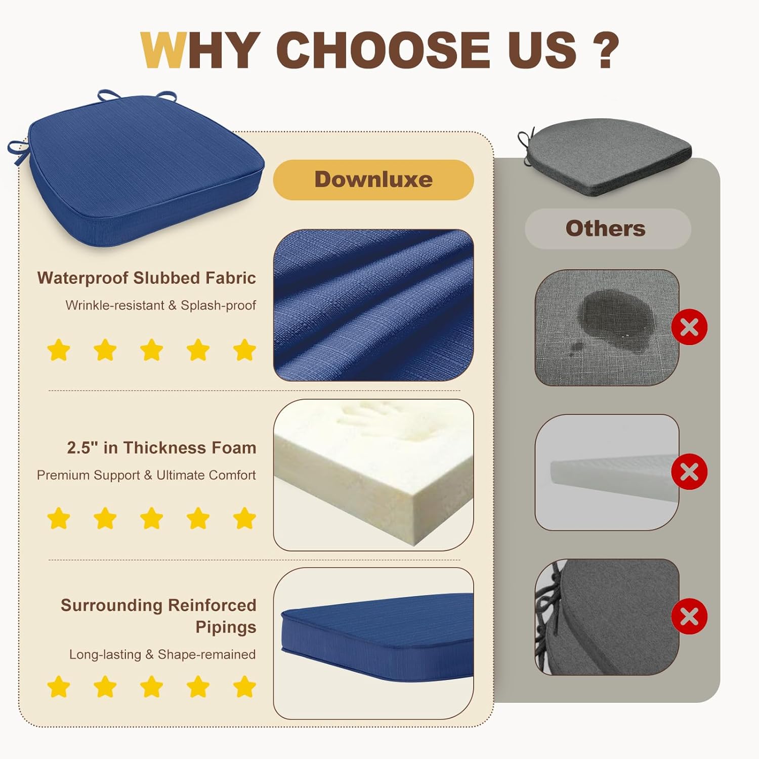 - Highly Supportive Foam Filler: Made with premium high-density foam, this dining chair cushion rebounds quickly for superior comfort, reducing discomfort even when sitting on hard chairs. It maintains its shape over time for long-lasting use