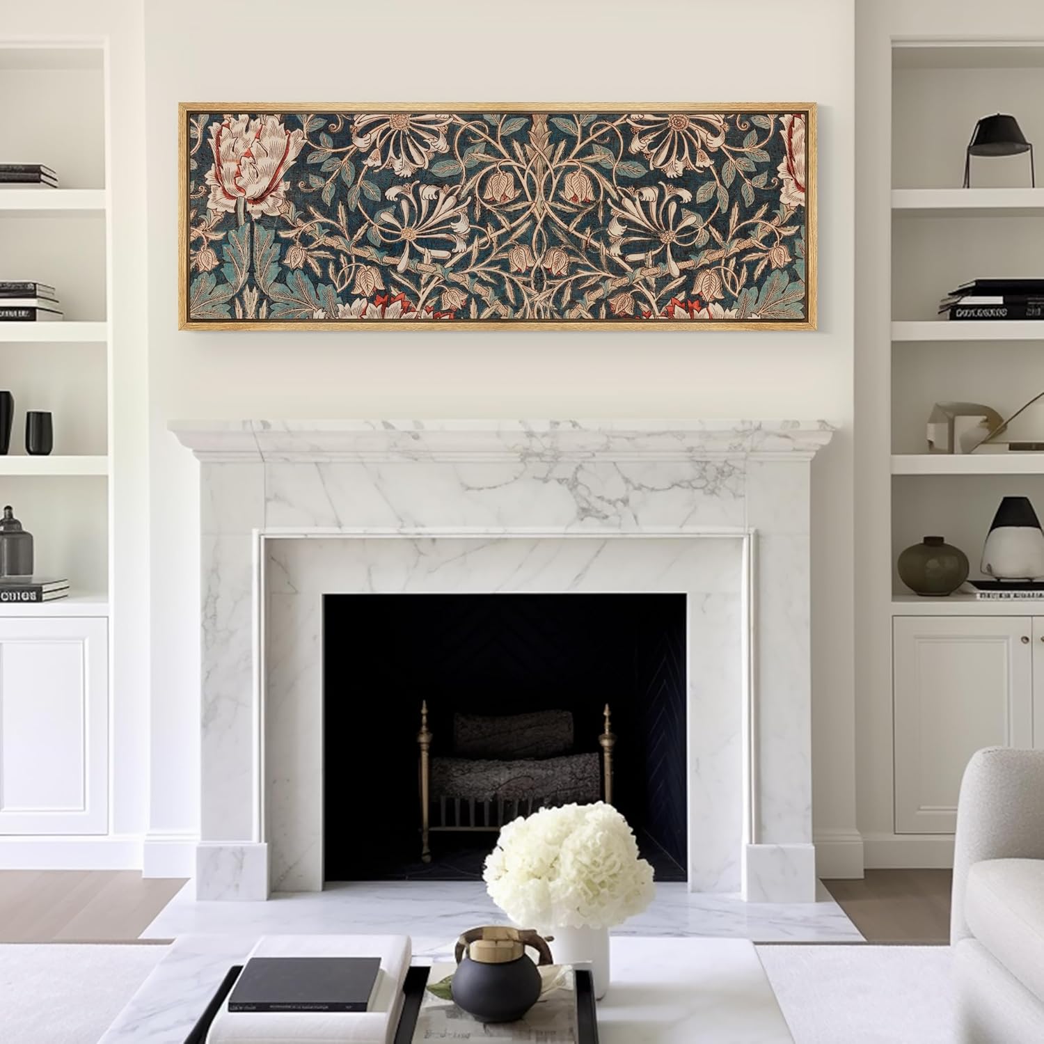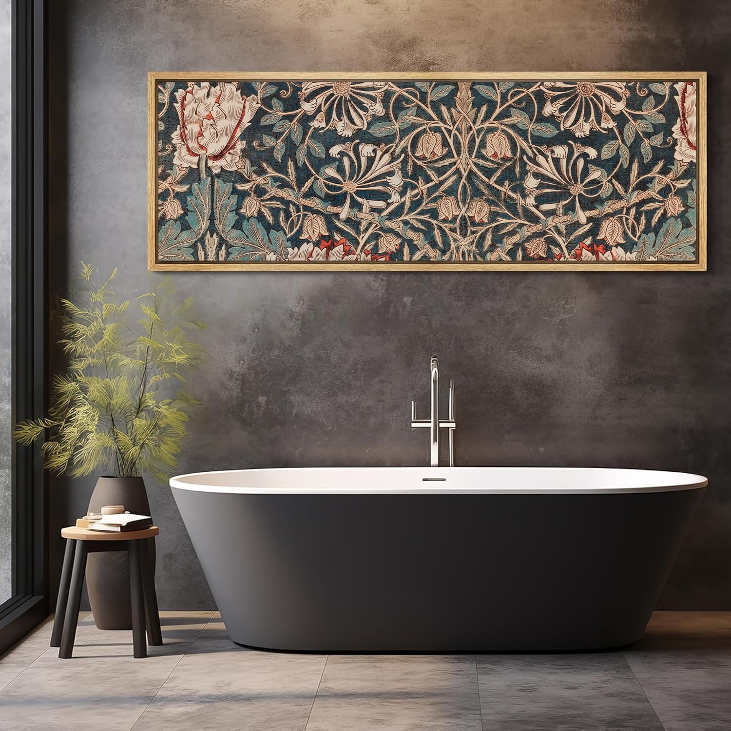MUDECOR Large Framed Canvas Print Wall Art Botanical Elegance Victorian Style Floral Antique Retro Fine Art Illustrations Decorative Colorful for Bedroom - 60"x20"