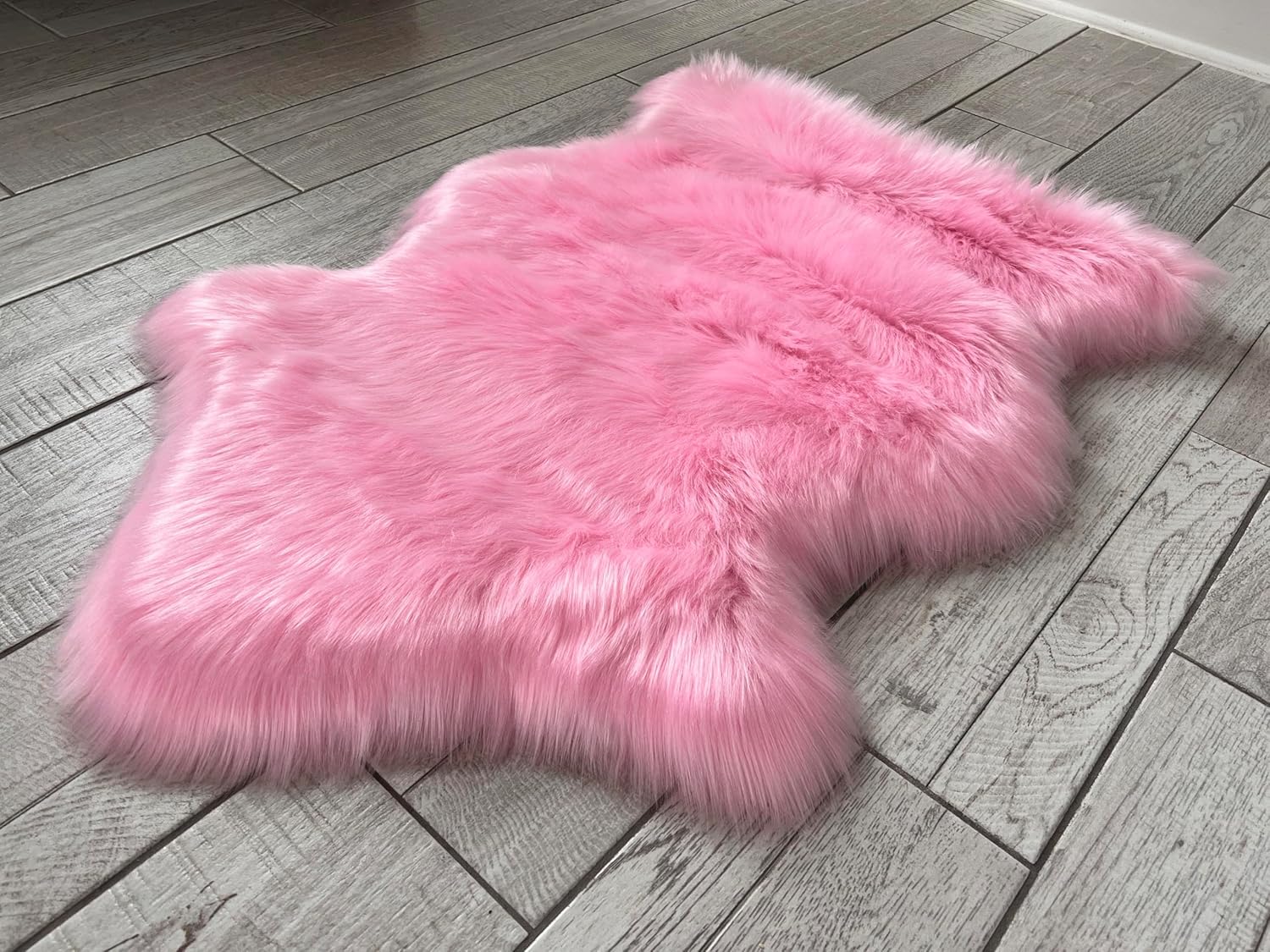 LAMBZY Faux Sheepskin Super Soft Hypoallergenic Free Shape Silky Shag Rug, Luxury Shaggy Plush Carpet for Bedrooms Living Kids Room Sofa Rugs (Pink, Single 2'x3')