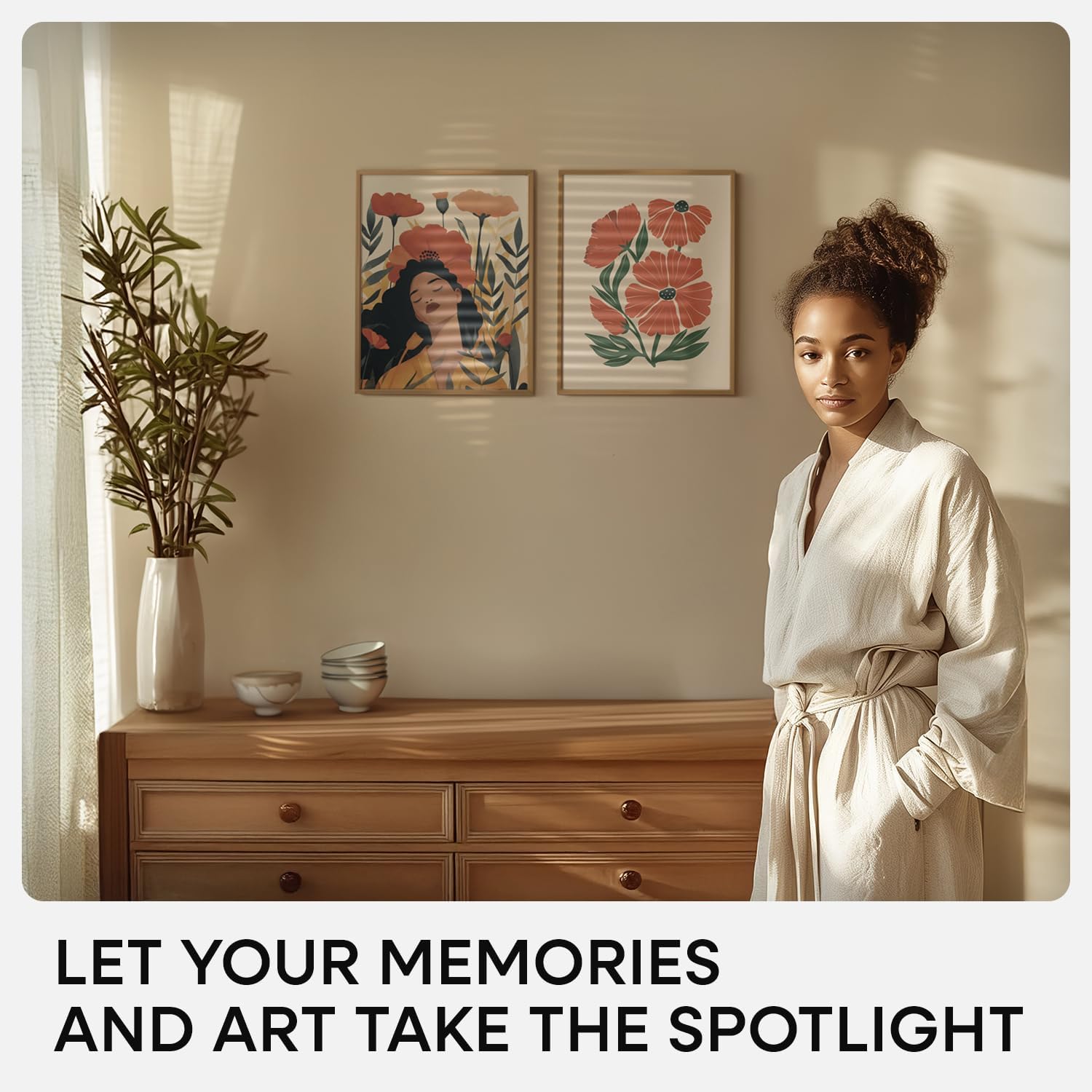 - WARM BRONZE. UNDERSTATED CHARM. Subtle and inviting, the bronze finish has a matte texture that softens light. Ideal for warm-toned photography, botanical prints, and natural materials.
