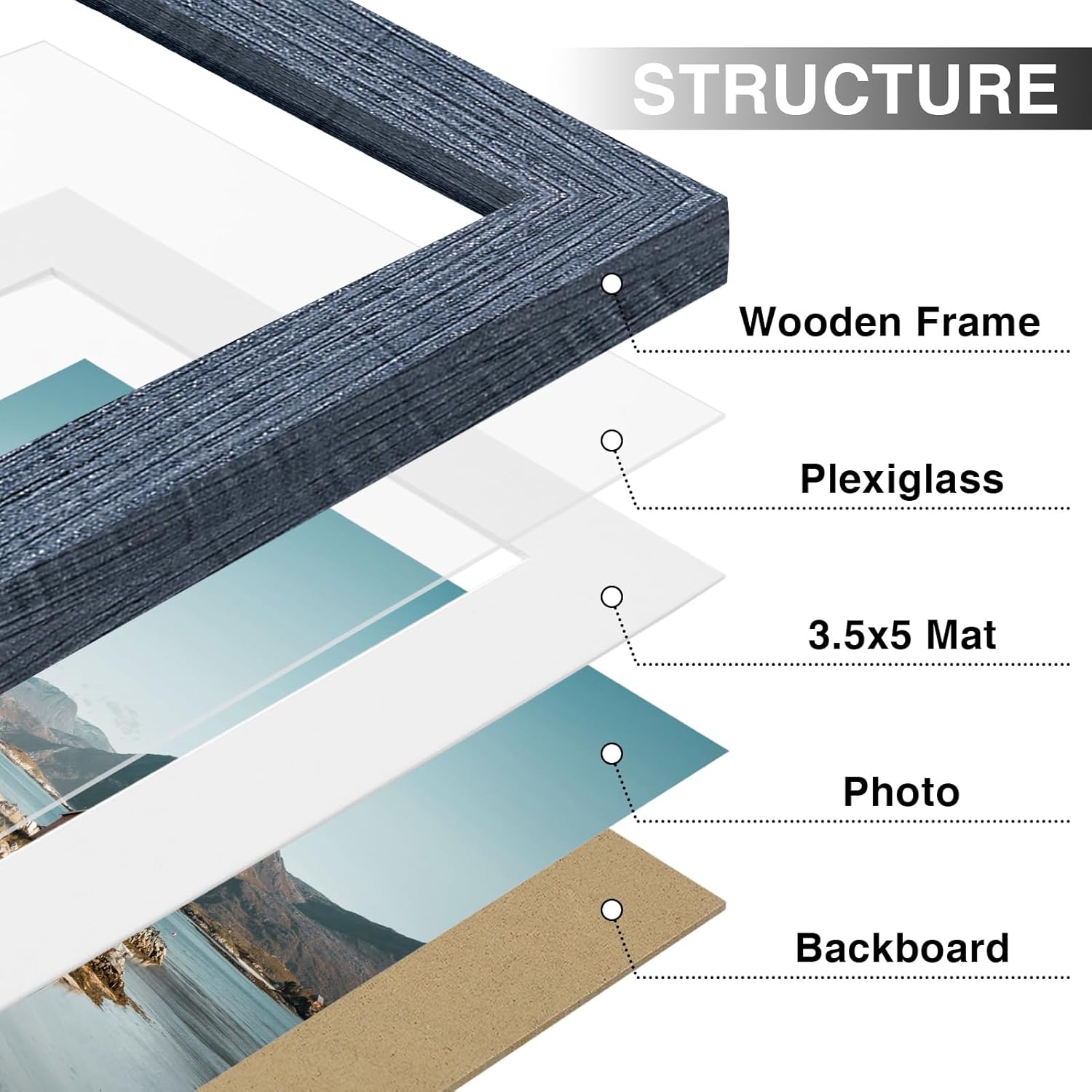 - Premium Materials: Made of sturdy composite wood material, our frames are lightweight and built to last. With a high-definition plexiglass front that resists breaking, simply remove the protective film before use to reveal crystal-clear clarity