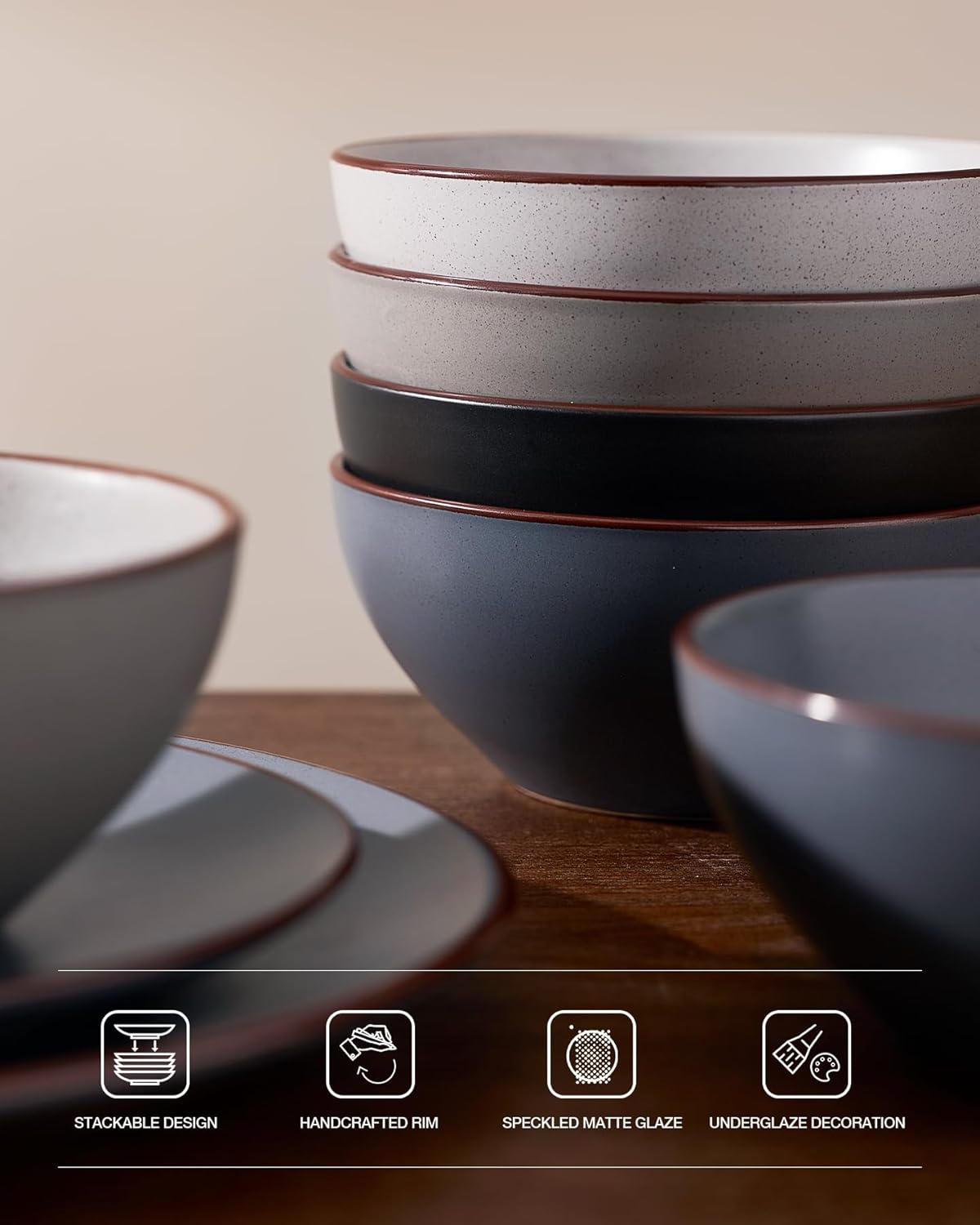 - [Premium ceramic durability]: Fired at 2340°F for 13.5 hours, our dishes have commendable weight and thickness, resist chipping, scratching, and daily wear, ensuring reliable kitchen use