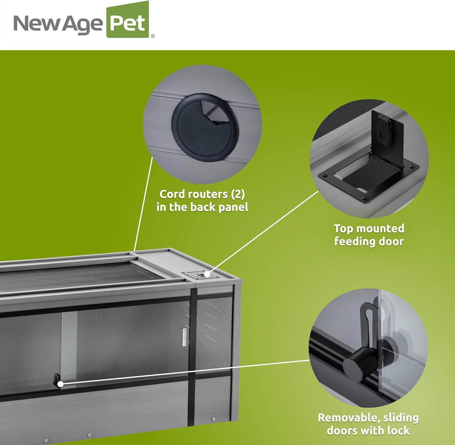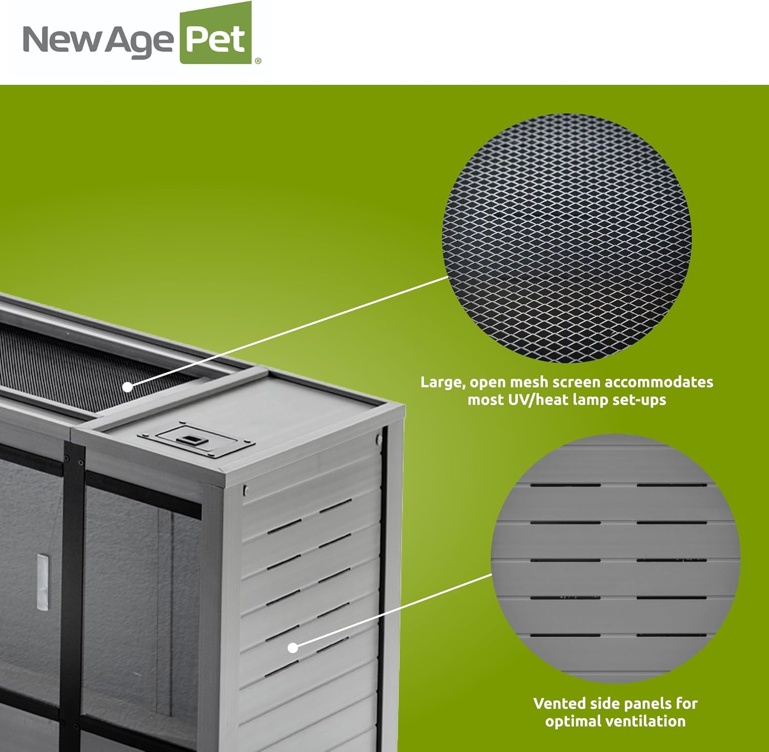 New Age Pet ECOFLEX 60-Inch Mojave Reptile Lounge in Grey- Durable, Moisture-Resistant Wood Plastic Composite Habitat with Vented Side Panels, Removable Sliding Glass Doors & Lock