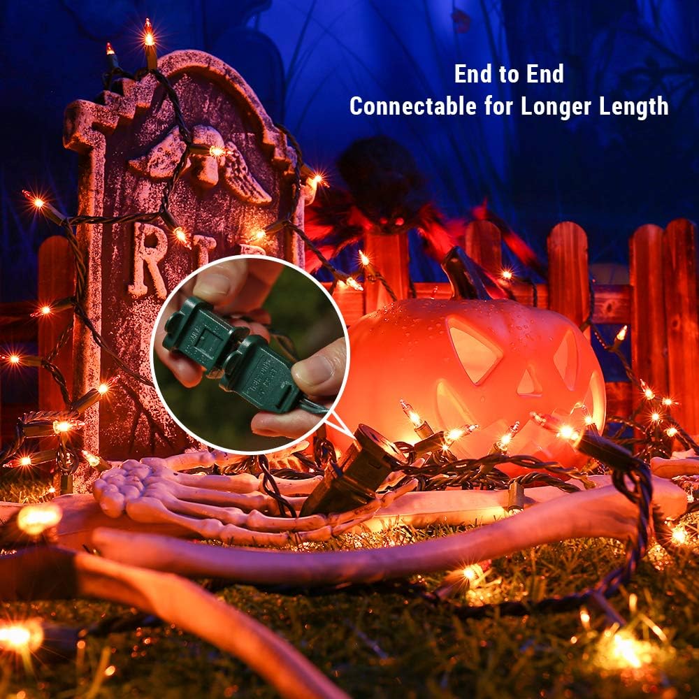 - End-to-End Connectable Orange Halloween: This mini light set is end to end connectable up to 3 sets (450 lights), expandable up to a longer 104.4ft length for any big project or small. UL certified, great value and quality, safety use. Orange tone, perfect for Halloween decoration.