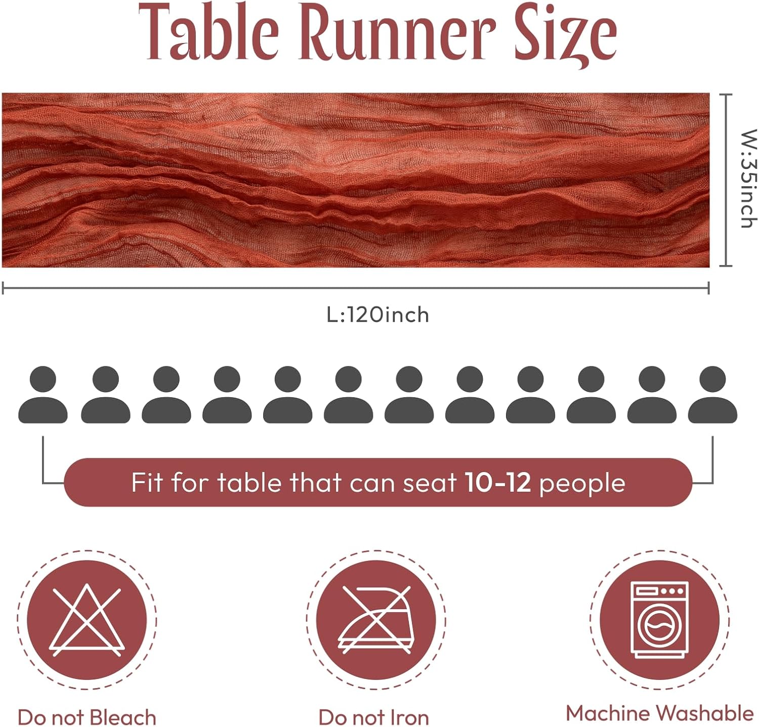- 【Package Includs】5pcs Cheesecloth table runner (35" W x 120" L), all neatly packed in a transparent plastic bag. This versatile table runner is specifically designed to fit most types of tables.