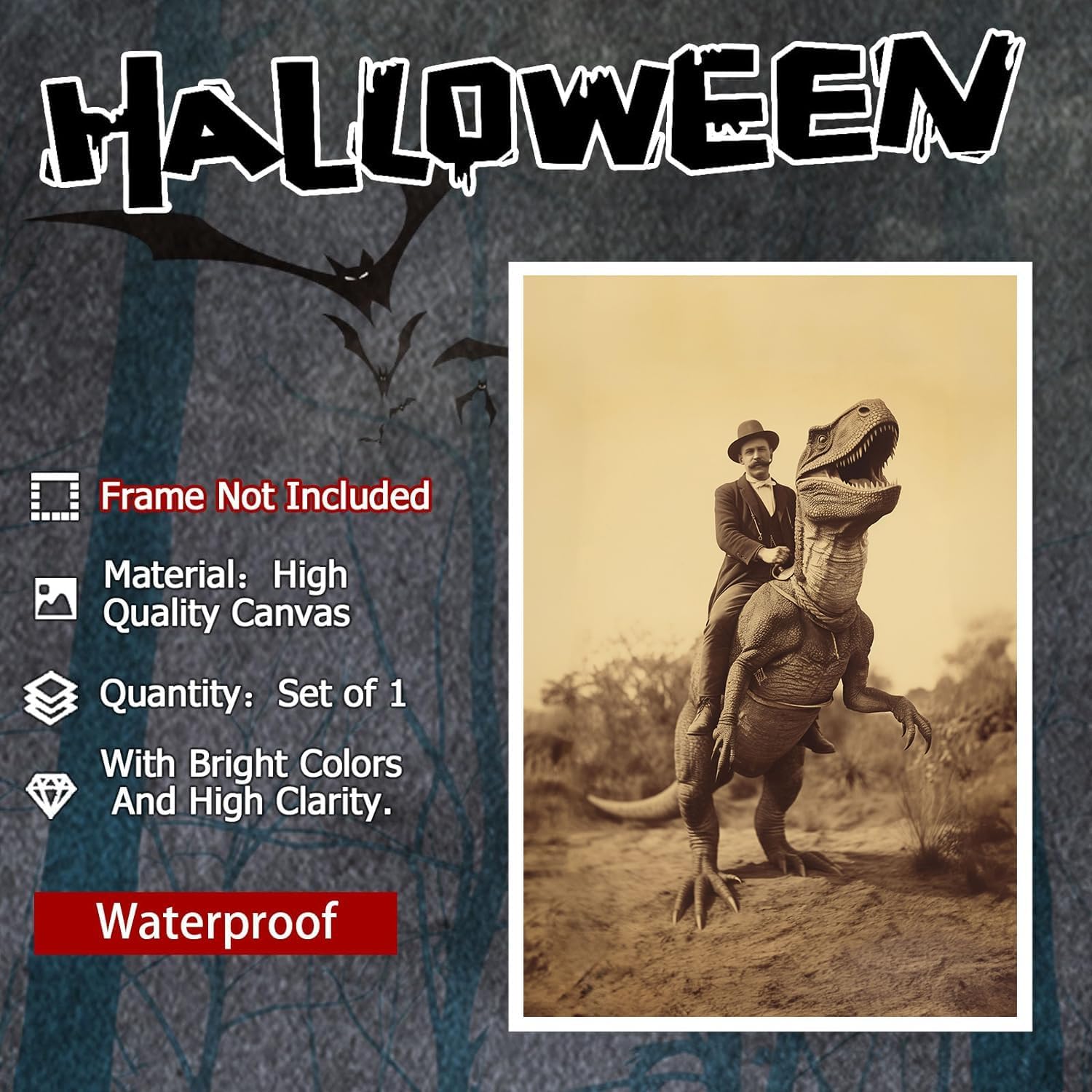 - Gothic Home Decor,A perfect Christmas presents,All Saints' Day and New Year gifts for your relatives,son and Male friend. High definition canvas poster depicting dinosaurs and men. It Gives a strong visual impact.