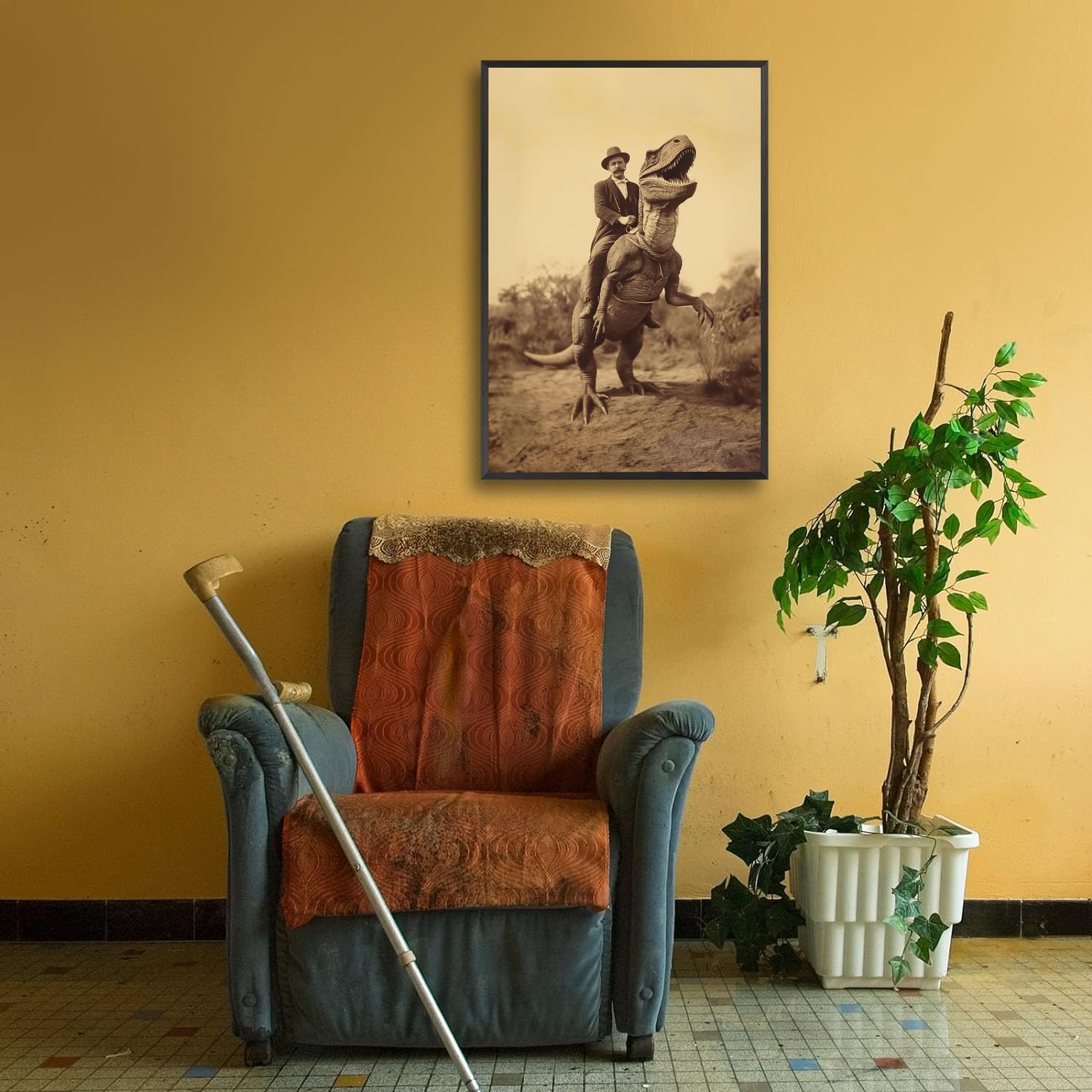 Goth Decor Antiqued Wicca Art Poster Dark Academy Dinosaur And Cowboy Canvas Wall Art Horror Posters Spooky Indoor Art Family Bedroom Office Space Decor 24X36inch Aluminum Framed