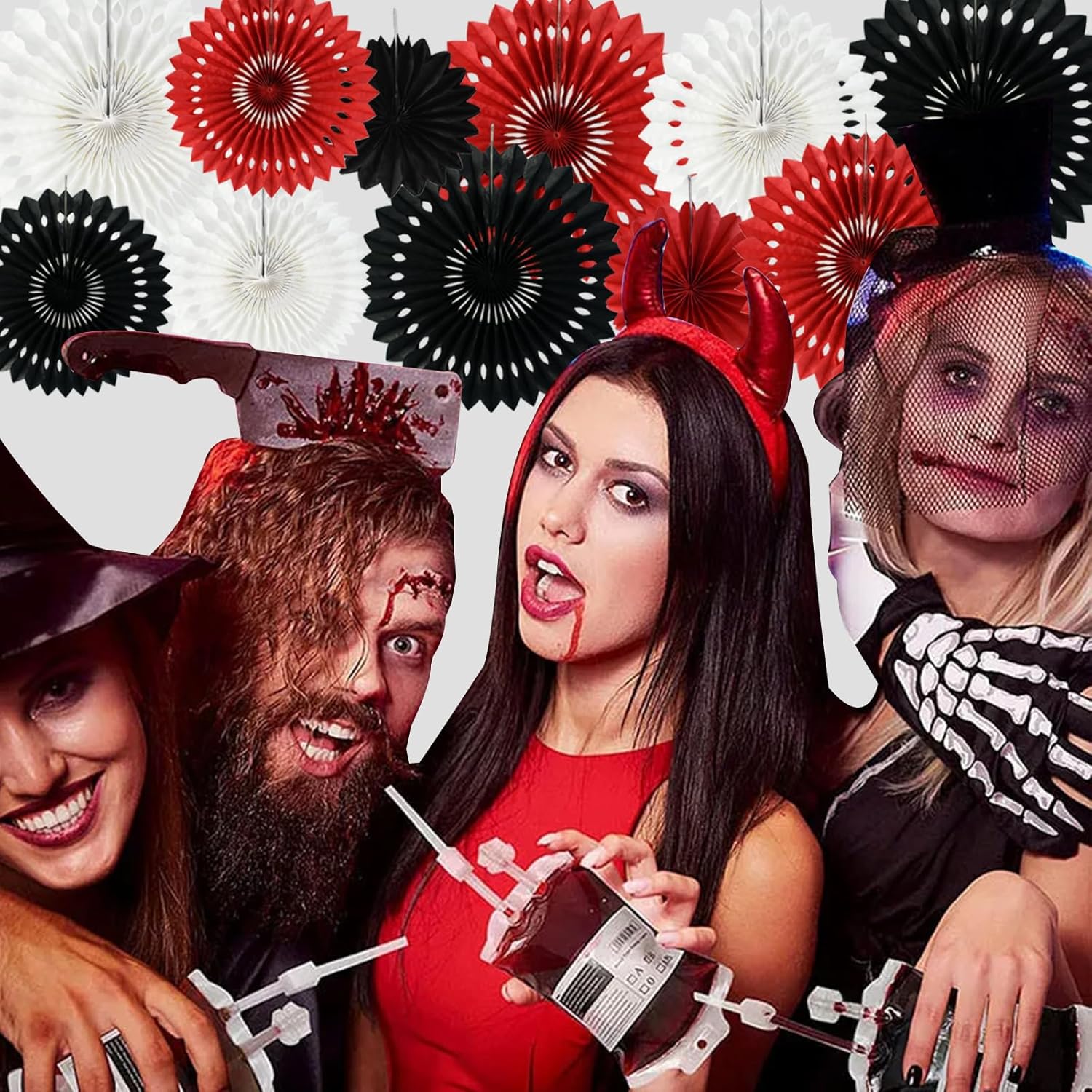 - 【Hanging decoration kit】: includes 11 paper flower fans of four sizes, among which the paper flower fan size is 16 inches * 3, 12 inches * 3, 8 inches * 3,6 inches*2, color include red,black,white.