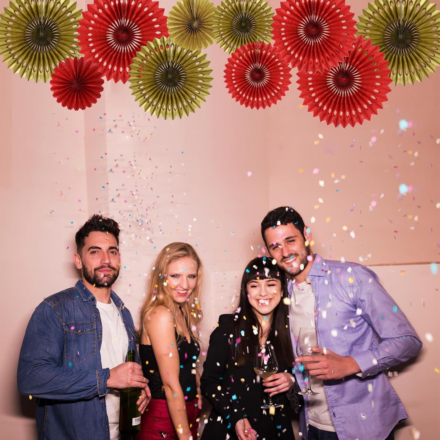 - 【Hanging decoration kit】: includes 10 paper flower fans of 5 sizes, among which the paper flower fan size is 16 inches * 2, 12 inches * 2,10 inches * 2, 8 inches * 2,6 inches*2, color include red,gold.