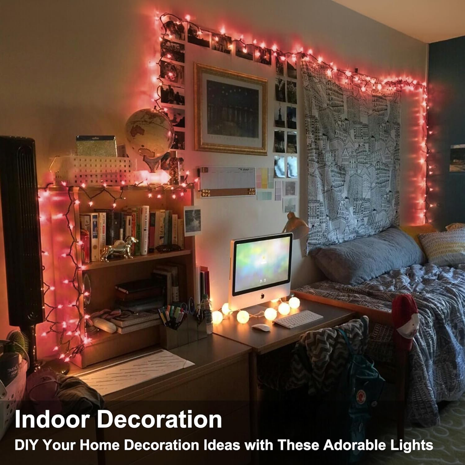 - 300 Counts Pink Mini Lights: Old-fashion pink incandescent Christmas light set, creates a festive atmosphere, celebrates Christmas, New Year, Birthdays and special holidays, cast a magical look to your house and garden, and impress your family friends, and relatives with this easy to set up!