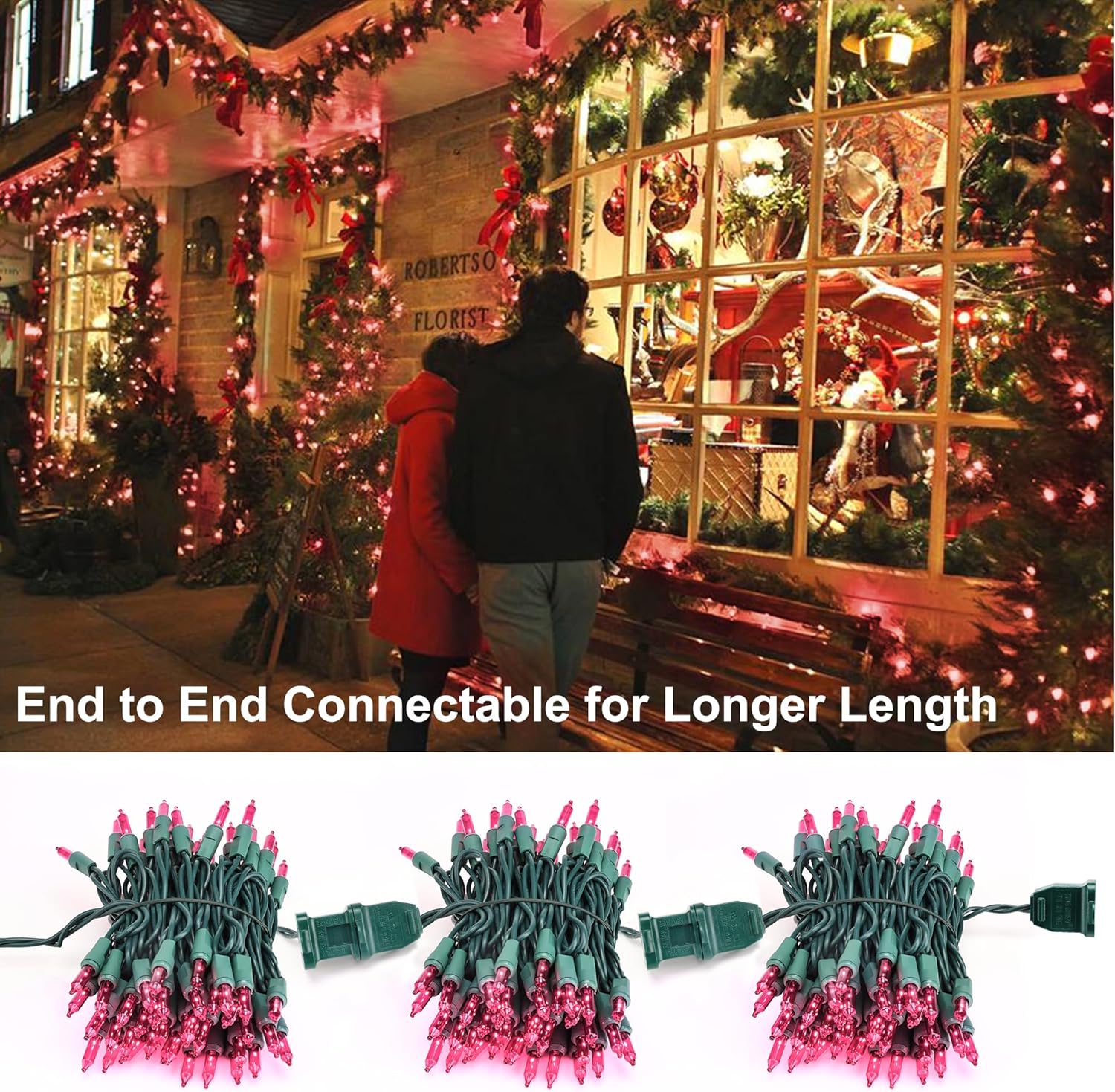 - Connectable Pink String Lights: This pink mini light set is end to end connectable up to 3 sets (450 lights), expandable up to a longer 104.4ft length for any big project or small. Widely use for Christmas, Valentine's Day, Wedding Party or daily lighting decor. UL certified, great value and quality, safety use.