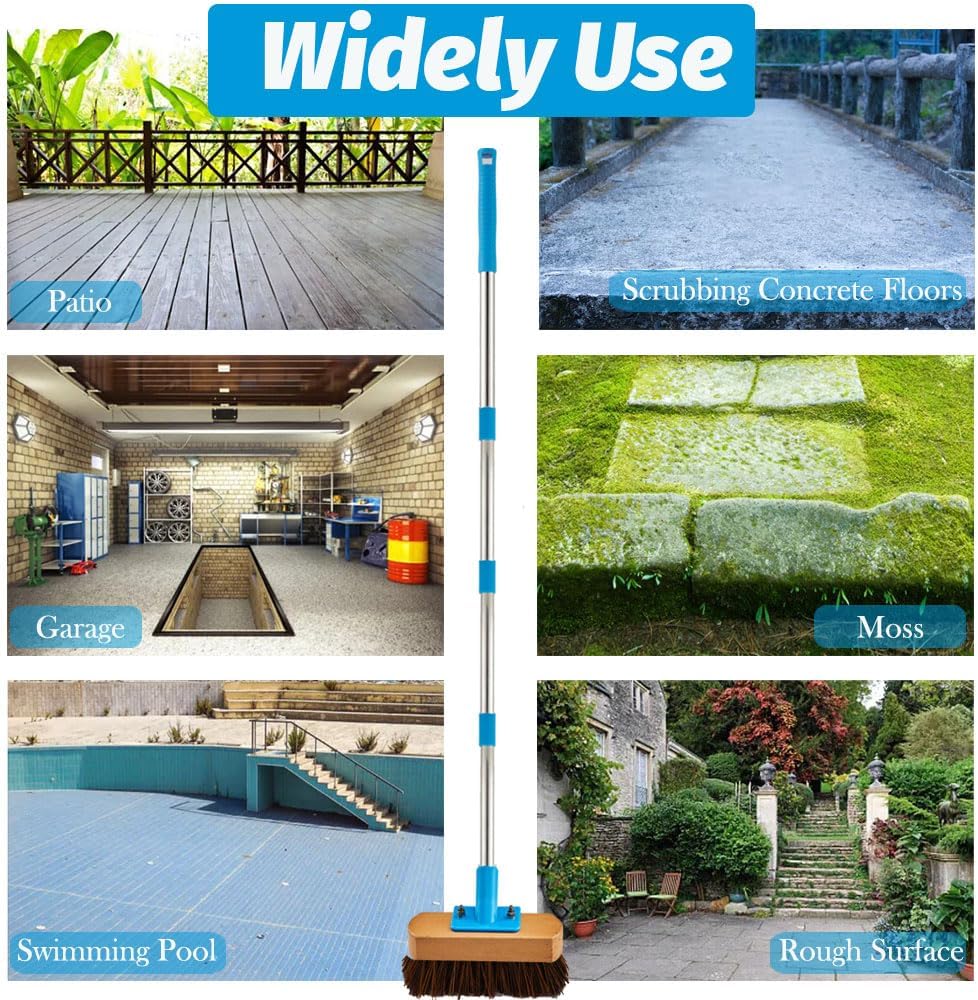- 60" STAINLESS STEELL HANDLE: This patio brush comes with 4 stainless steel pole that can be adjusted from 17 inches to 60 inches as you want. Don't need bend or squat down yourself while cleaning anymore. Save your back and waist. Stainless steel poles are sturdy and durable, and they are not easy to rust after long-term use
