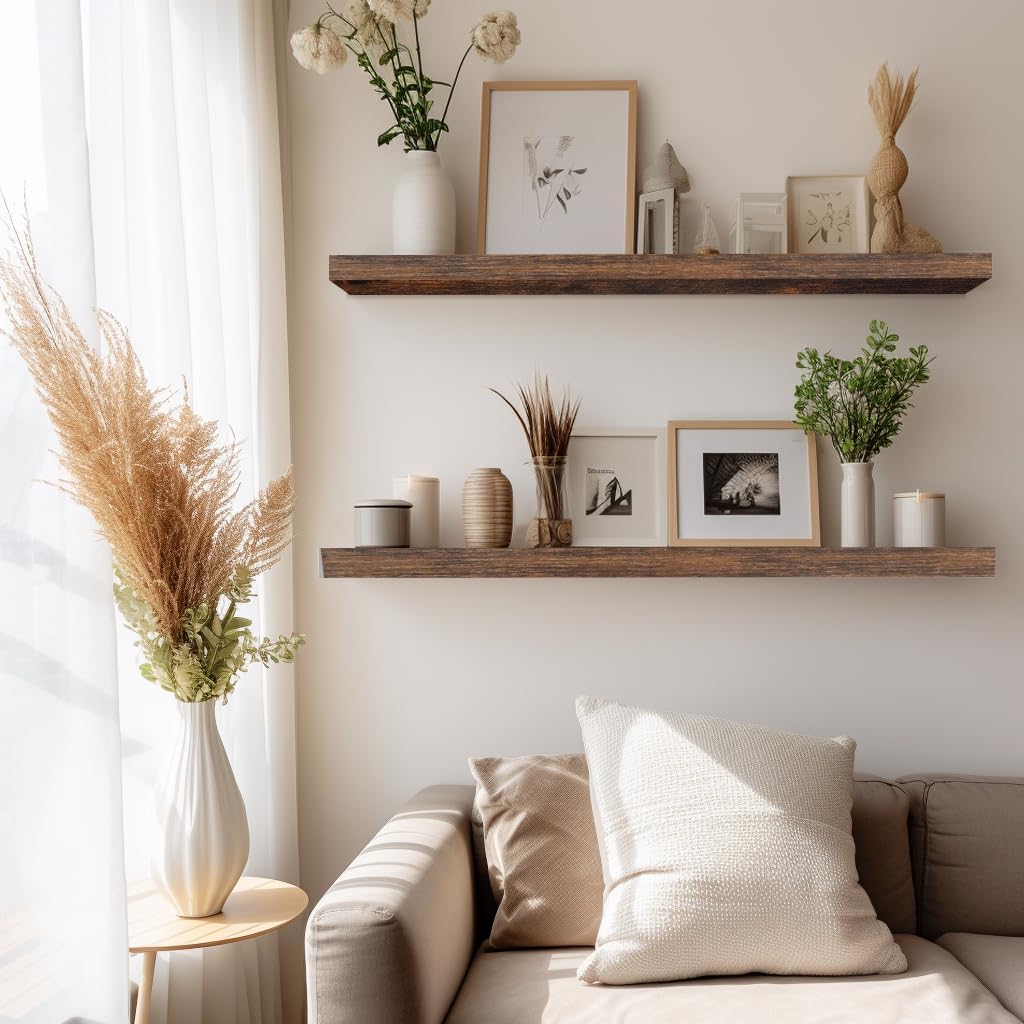 - Space-Saving Solution: With each floating shelf measuring 36W x 9.25D x 1.5H inches each, you get optimal space utilization without sacrificing style. These shelves are perfect for showcasing your favorite decor items while decluttering your space.