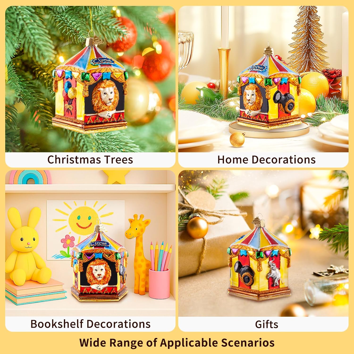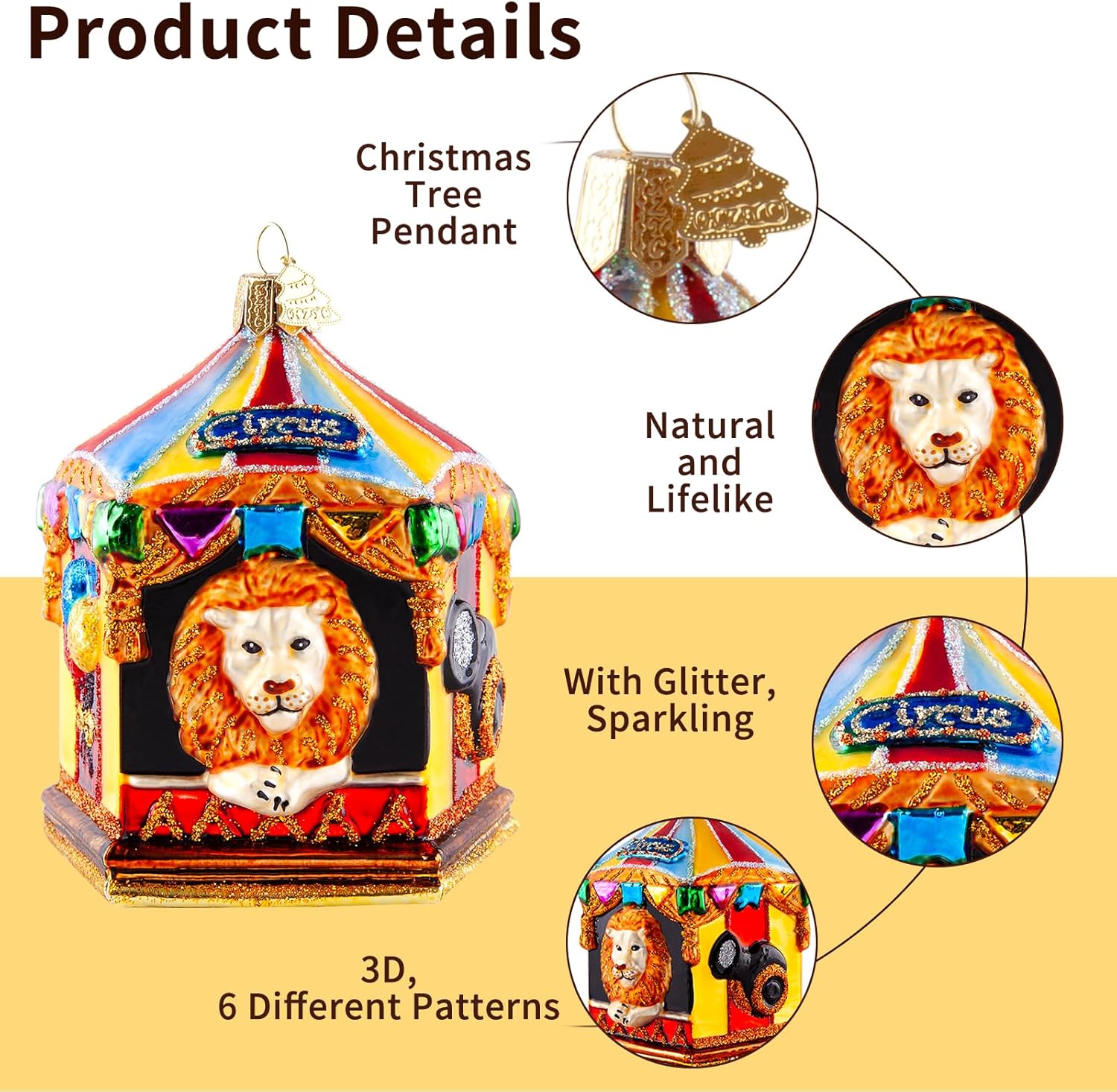 - Exquisite & Unique Design: The christmas tree decorations features a unique circus themed design, handcrafted and exquisitely crafted. It features 5 different patterns: lion, fortress, elephant, seal, and balloon, with vibrant color combinations and vivid and interesting patterns