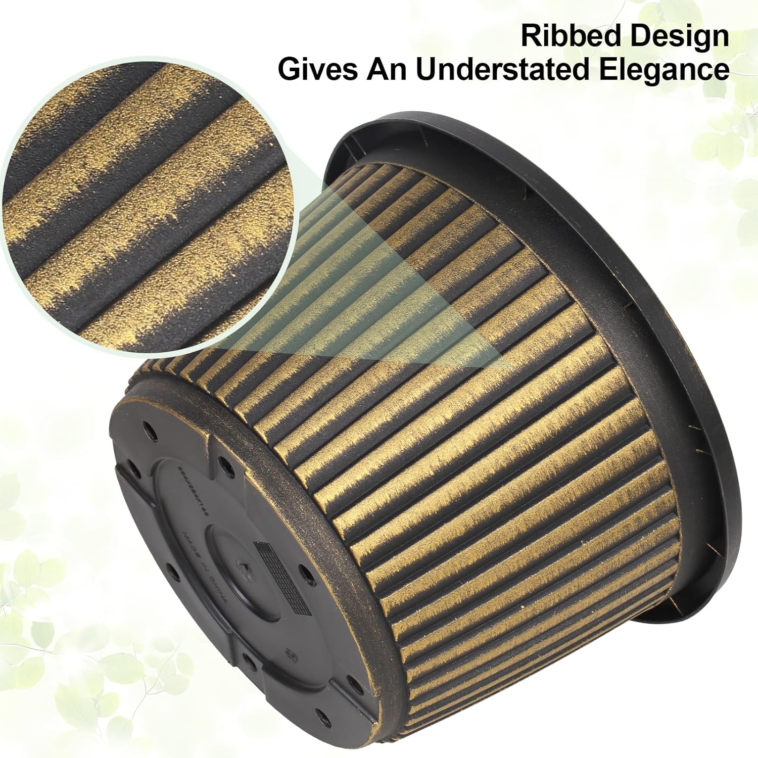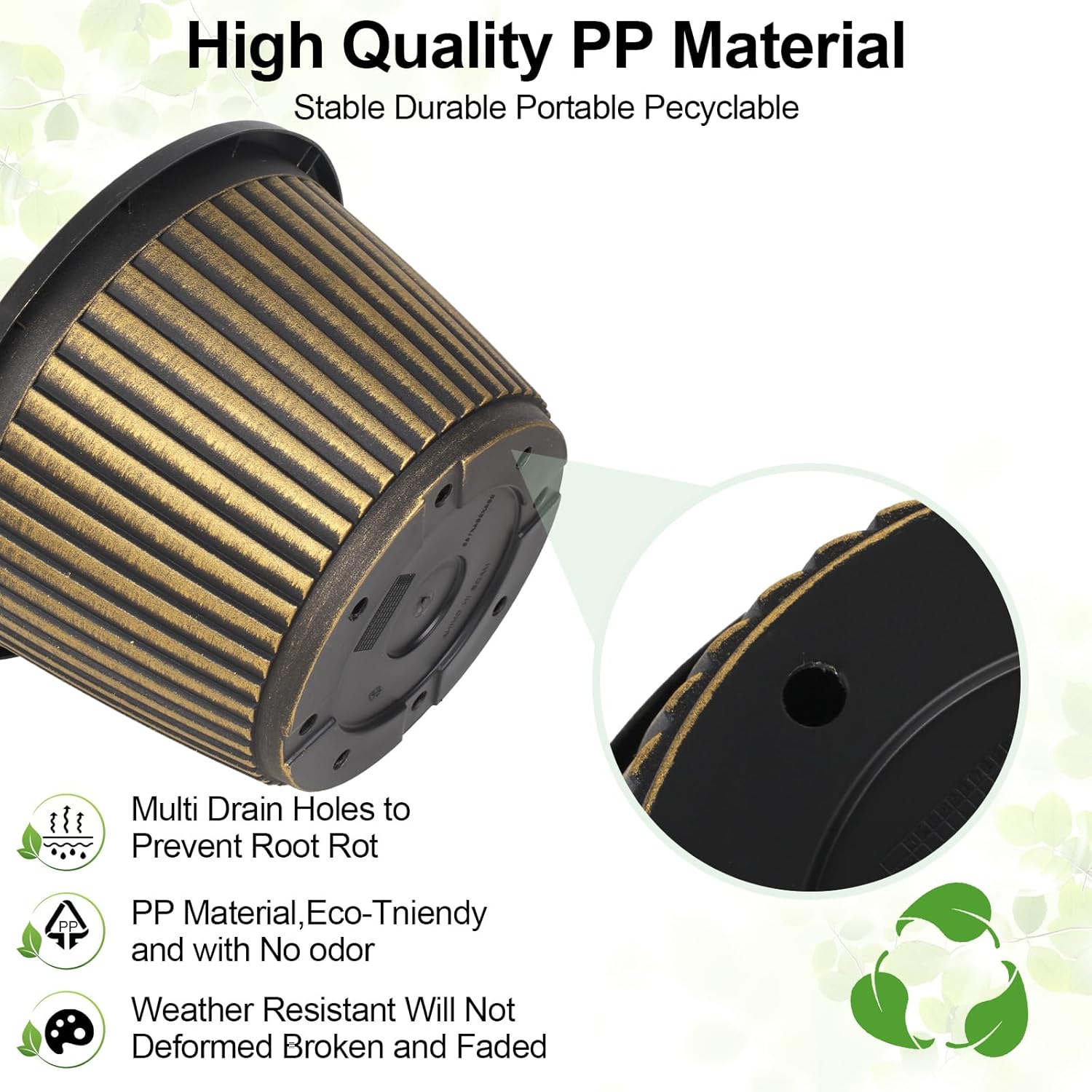 - 【MODERN STYLE PLANTERS】 Indoor planters with saucers provide a unique,nice style in ribbed design which gives an understated elegance that will enhance the beauty of your plant. These 10 inch plant pots are available in red-brown &blue-green & gold finished with a black antique stain. Plastic flower pots would be a beautiful addition to anyone’s deck or sunroom or house! for indoor and outdoor . With better breathabiity and water absorption, it’s beneficial to the healthy growth of plants