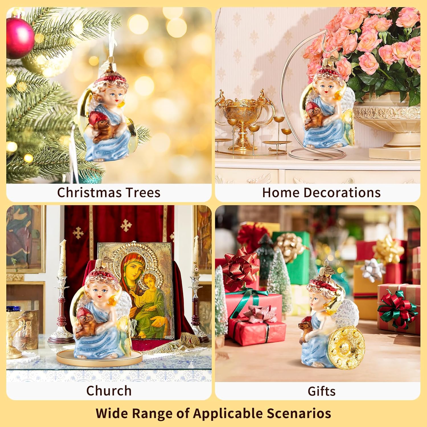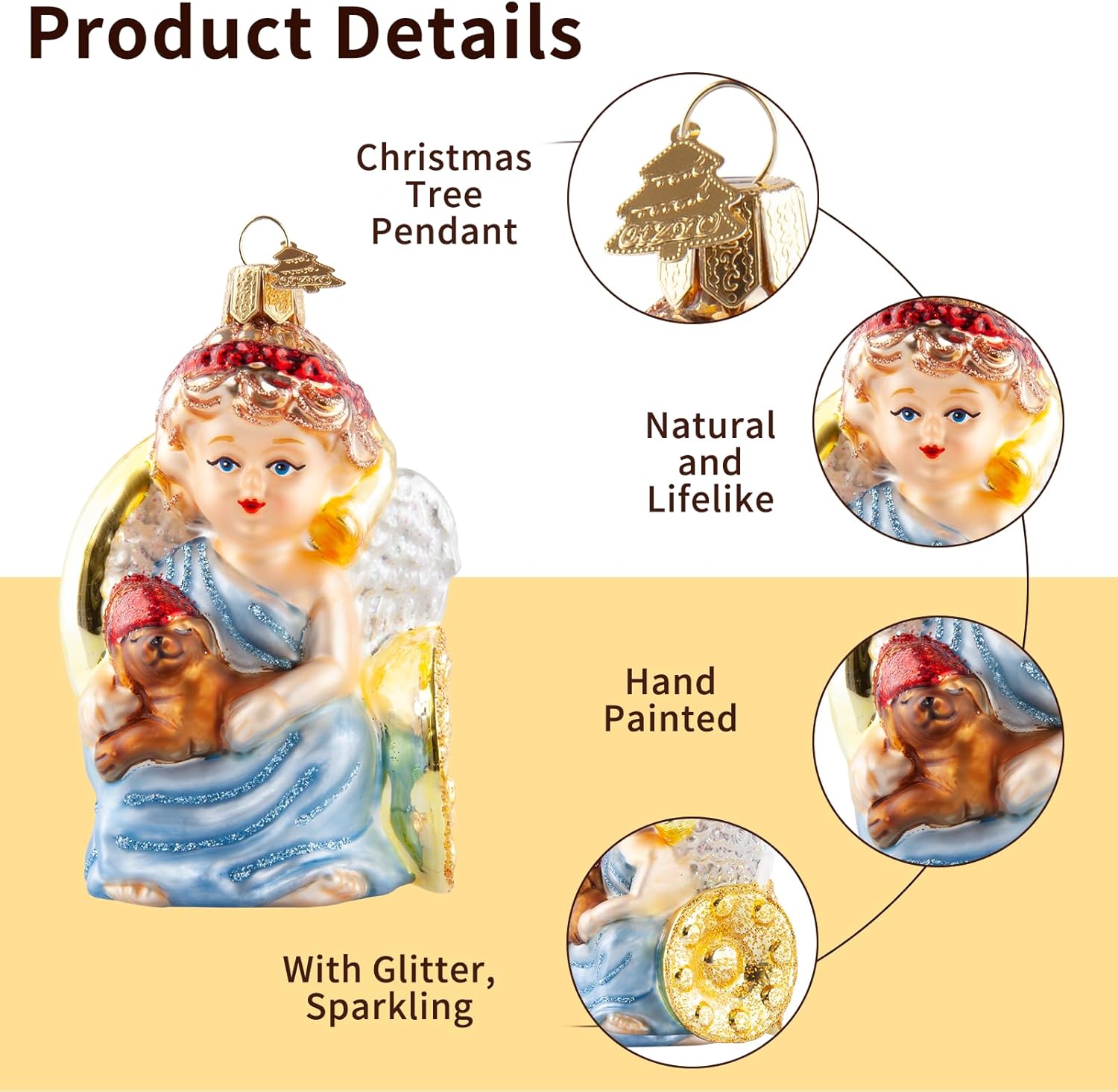 - Exquisite & Unique Design: Our christmas tree ornaments features an angel sitting on a saxophone holding a brown puppy, perfectly capturing the essence of peace and love, creating a warm atmosphere for your Christmas tree. The angel ornaments overall design is purely hand drawn, with exquisite craftsmanship and delicate and dynamic portrayal of character images. You can decorate any place you want, and believe it can blend well