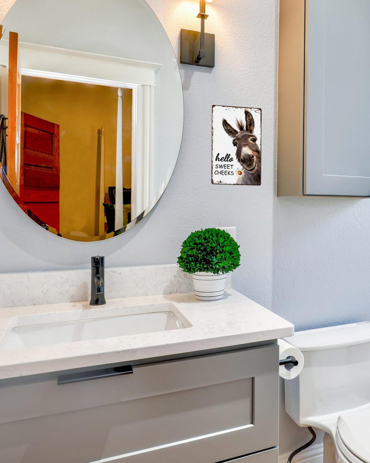 ALKB Western Bathroom Decor Vintage Donkey Gift - Funny Bathroom Restroom Toilet Decoration - Hello Sweet Cheeks Metal Sign 8x12 Inch