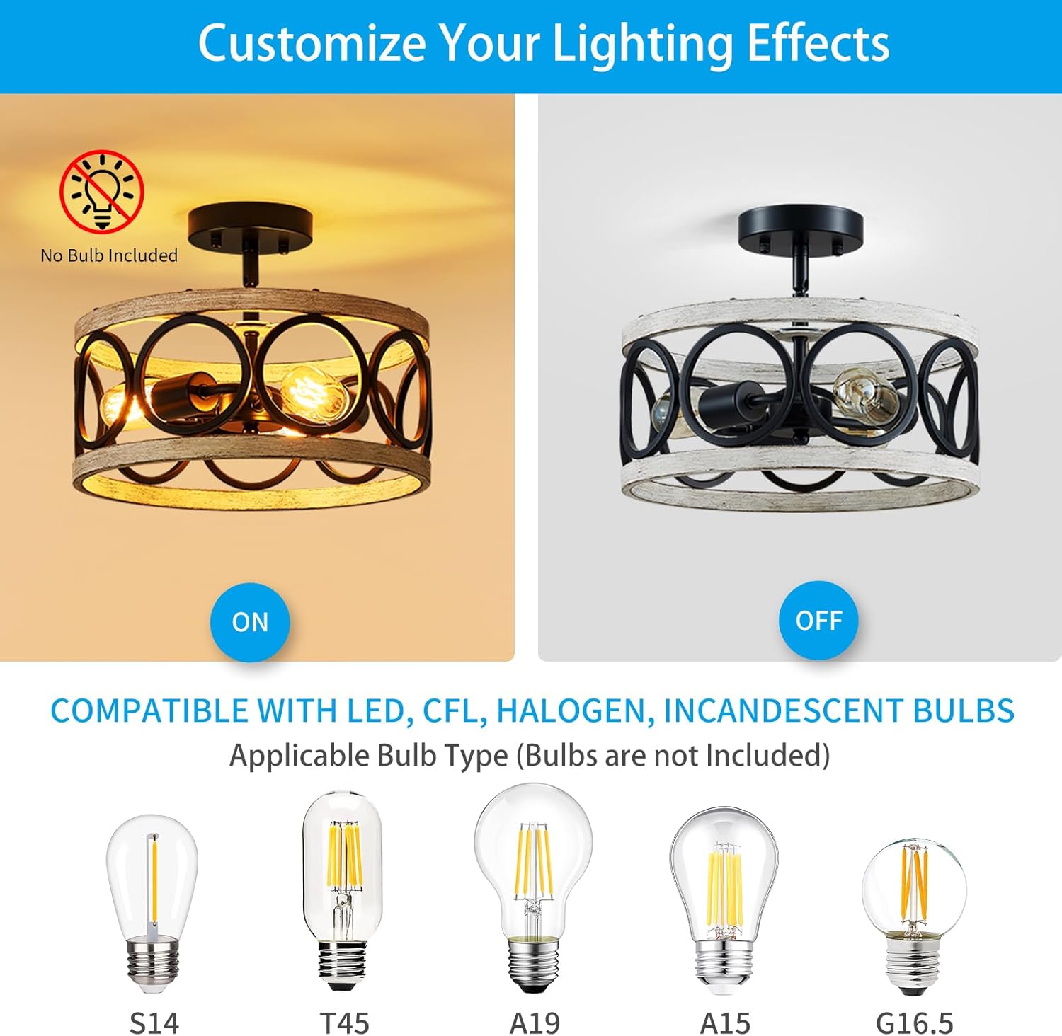 - BULBS AND DIMMABLE: Works well with LED, CFL, halogen, or incandescent bulbs, this vintage chandelier uses up to three 60W, E26 base bulbs. It works with dimmable bulbs and switches (bulbs and switches not included) and supports various bulb types, including S14, T45, A19, A15, and G16.5. The bulbs you choose can create different lighting effects, giving you the freedom to set the ambiance you desire.