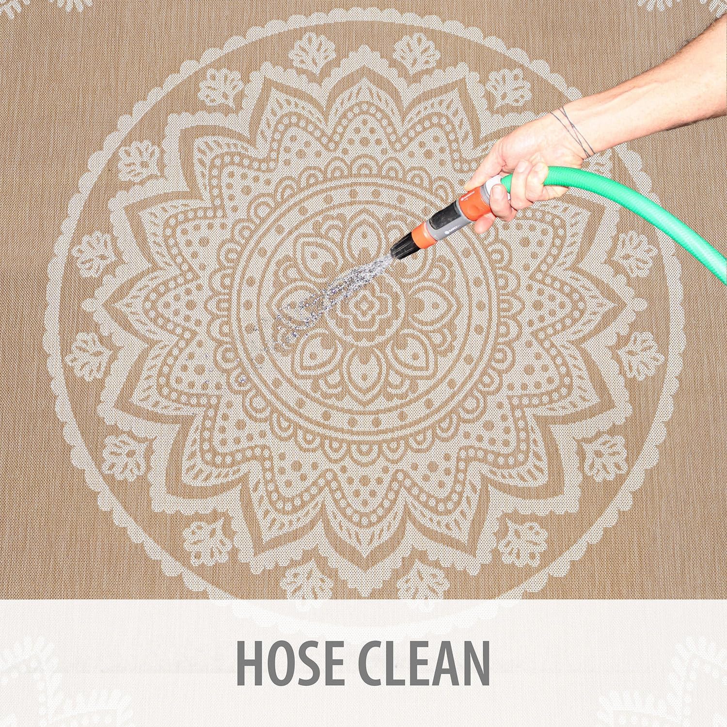 CAMILSON Outdoor Rug 9x12 Modern Area Rugs for Large Indoor and Outdoor Patios and Porches - Waterproof Washable Non-Shedding Easy-to-Clean Outside Carpet (9 x 12, Medallion - Beige/White)
