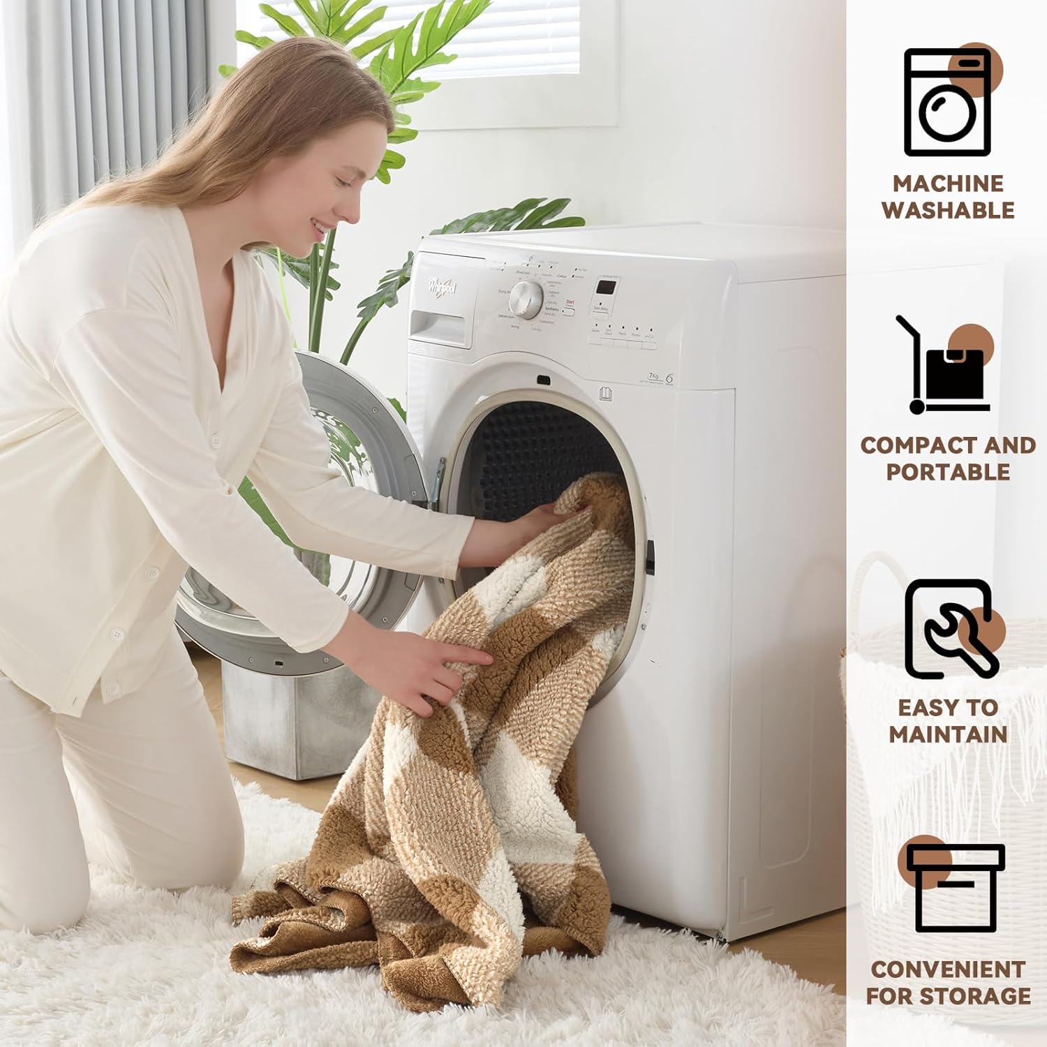 LURKA Checkered Sherpa Fleece Twin-Size Bed Blanket - Extra Thick and Warm Winter Soft Fuzzy Plush Blanket for Couches, Beds & Pets, Brown, 60x80 Inches