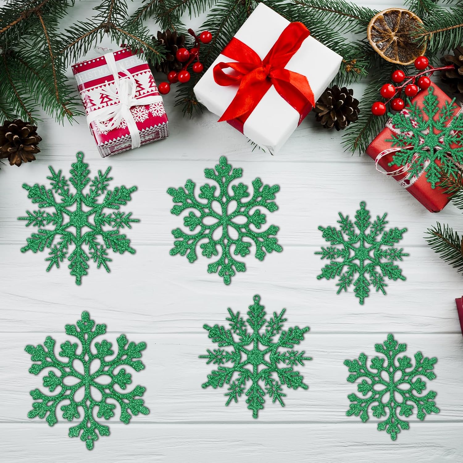 - Dark Green Snowflakes:The classic dark green snowflake ornament set will easily create gorgeous snowflake decorations for your winter wonderland parties; also perfect for winter or frozen themed birthdays, weddings, baby showers, New Year parties, Christmas tree decorations, Christmas craft projects, office winter displays, great gift wrapping, etc.