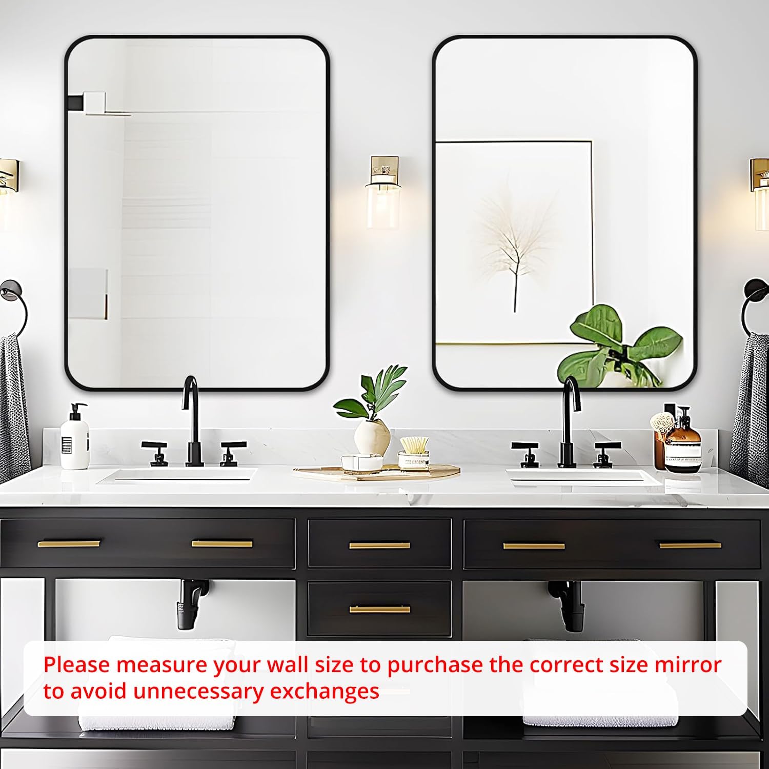 - Secure and Easy Installation - The bathroom vanity mirror comes with screws hardware. Just measure the distance of the hole behind the mirror and drill the holes in the wall to install the mirror
