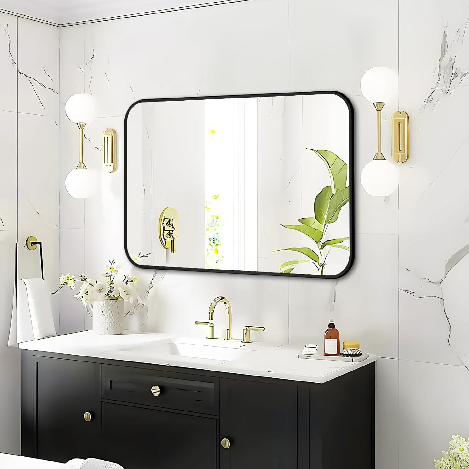 - Clear Reflection and High Quality - Rectangle mirror is made of HD glass, it provides clear reflection and undistorted images. Aluminum alloy frame will not rust and durable in the bathroom