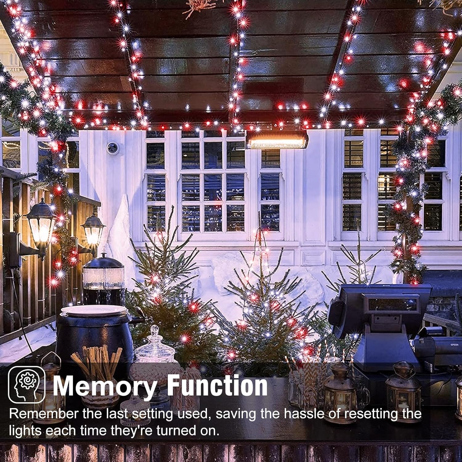- 【8 Lighting Modes】: This red white Christmas lights has 8 different lighting modes to choose from: combination, in waves, sequential, slo-glo, chasing/flash, slow fade, twinkle/flash, steady on. Press the button on the adapter to change the flashing modes. Moreover, built-in memory chip will save your last mode setting.