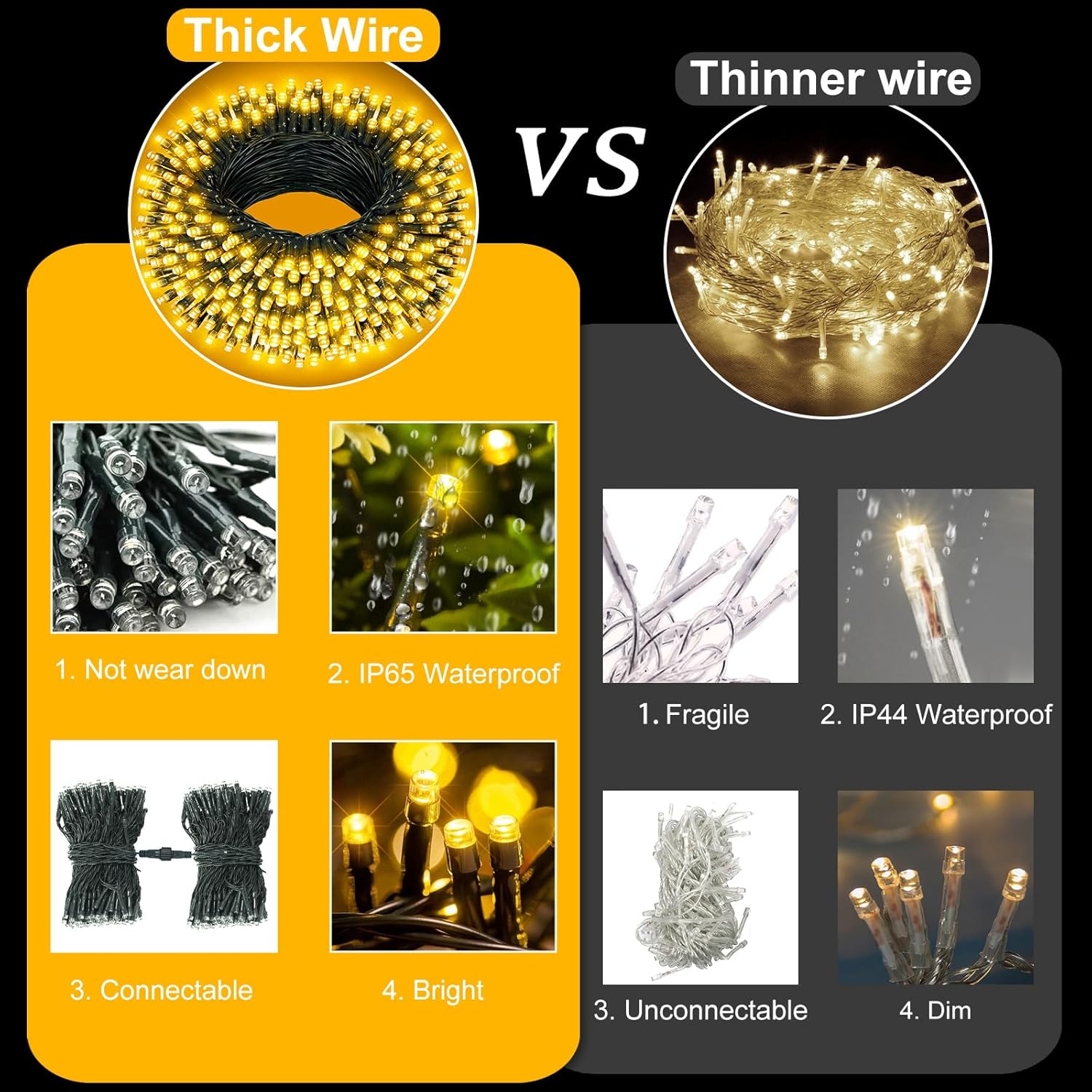 - Ideal for Christmas Decorations: The IP65 waterproof Christmas outdoor lights can withstand all kinds of weather, ideal for year-round use. These green wire twinkle lights are fabulous decorations for your garden, bistro, balcony, terrace, pergola, gazebo, tent, pool umbrella, cafe, bedroom or other occasions. But please note that plug not waterproof.