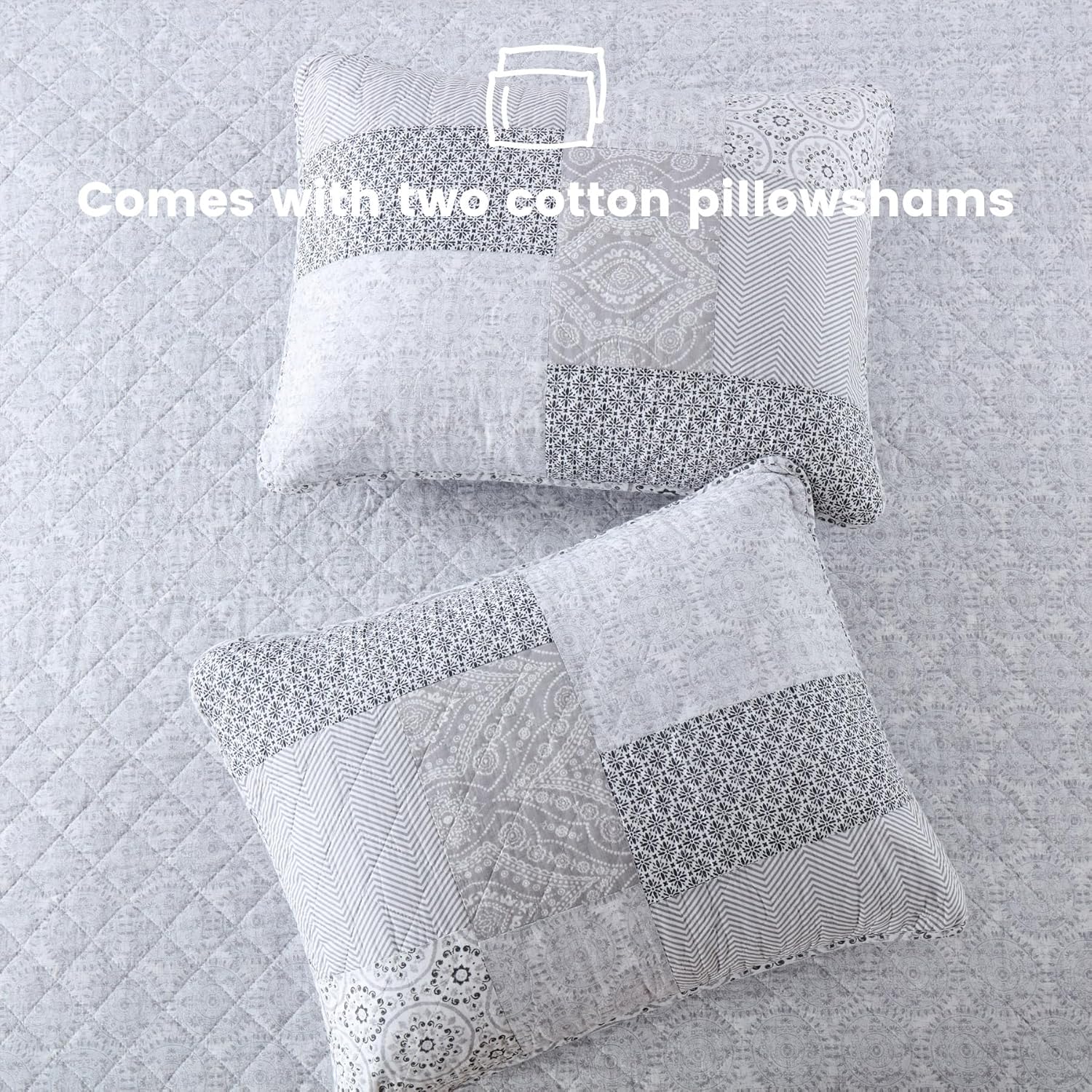 Secgo Queen Comforter Set for Bed - 100% Cotton Quilts Queen Size, Black Bedspreads (90 * 98 Inch) with 2 Pillow Shams, Patchwork Reversible Lightweight Bedding