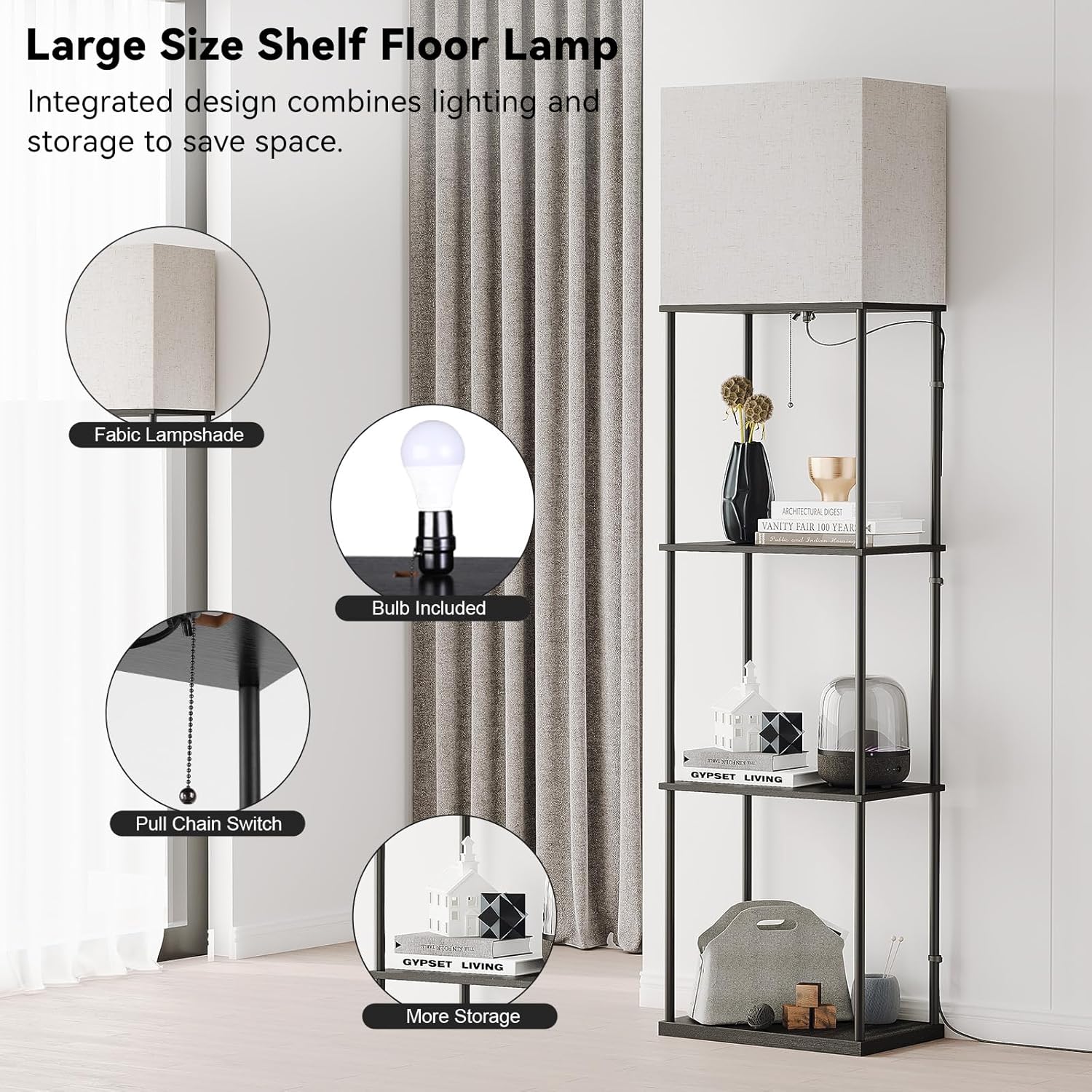 SUNMORY Large Size Floor Lamp with Shelves, 4-Tier Modern Standing Lamp with 3 Color Temperature Bulb, Tall Floor Lamp with Shelf, Corner Display Bookshelf Lamps for Living Room, Bedroom, Office