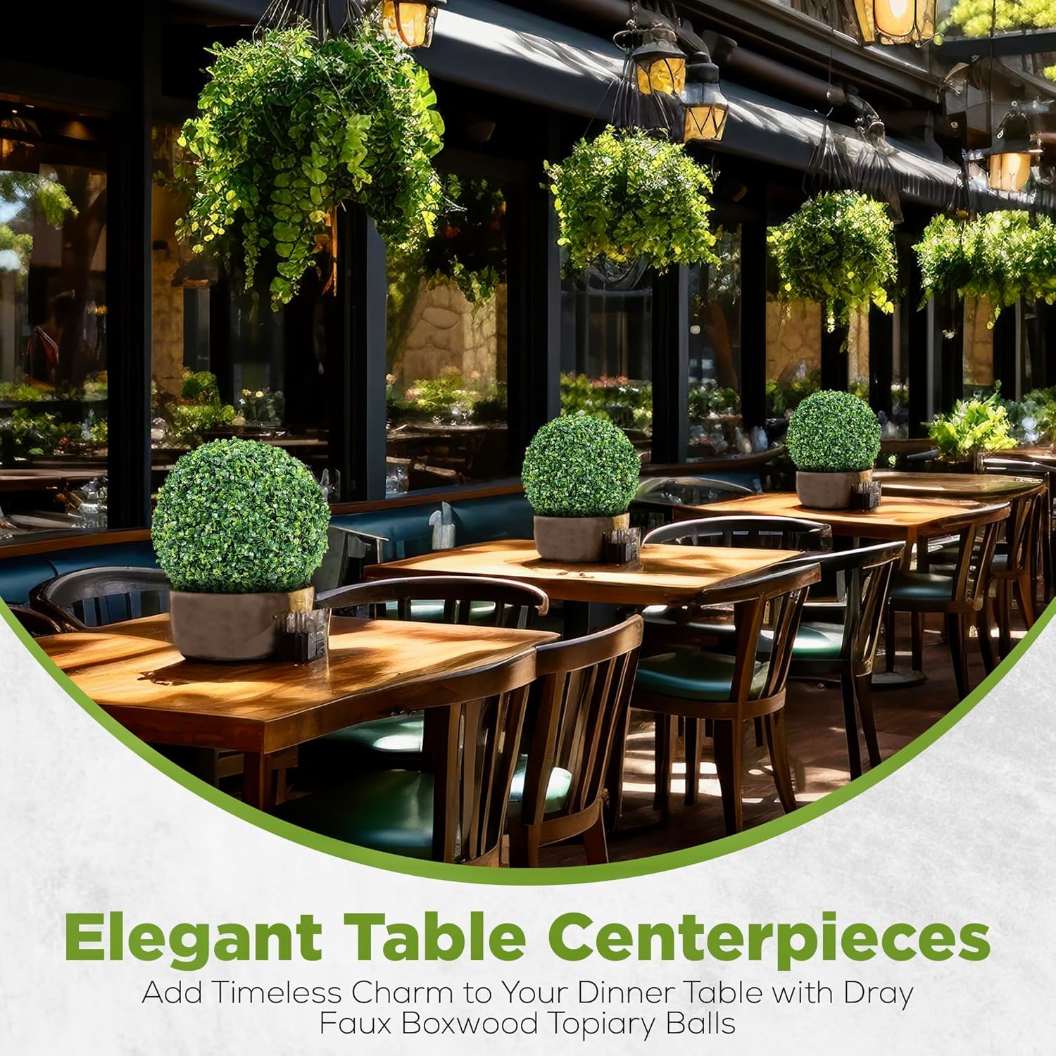 DRAY Premium 16.14" Faux Boxwood Balls – Set of 2 Artificial Topiary Spheres for Outdoor & Indoor Use – Realistic, UV-Resistant, Weatherproof Decorative Greenery – Check Measurements