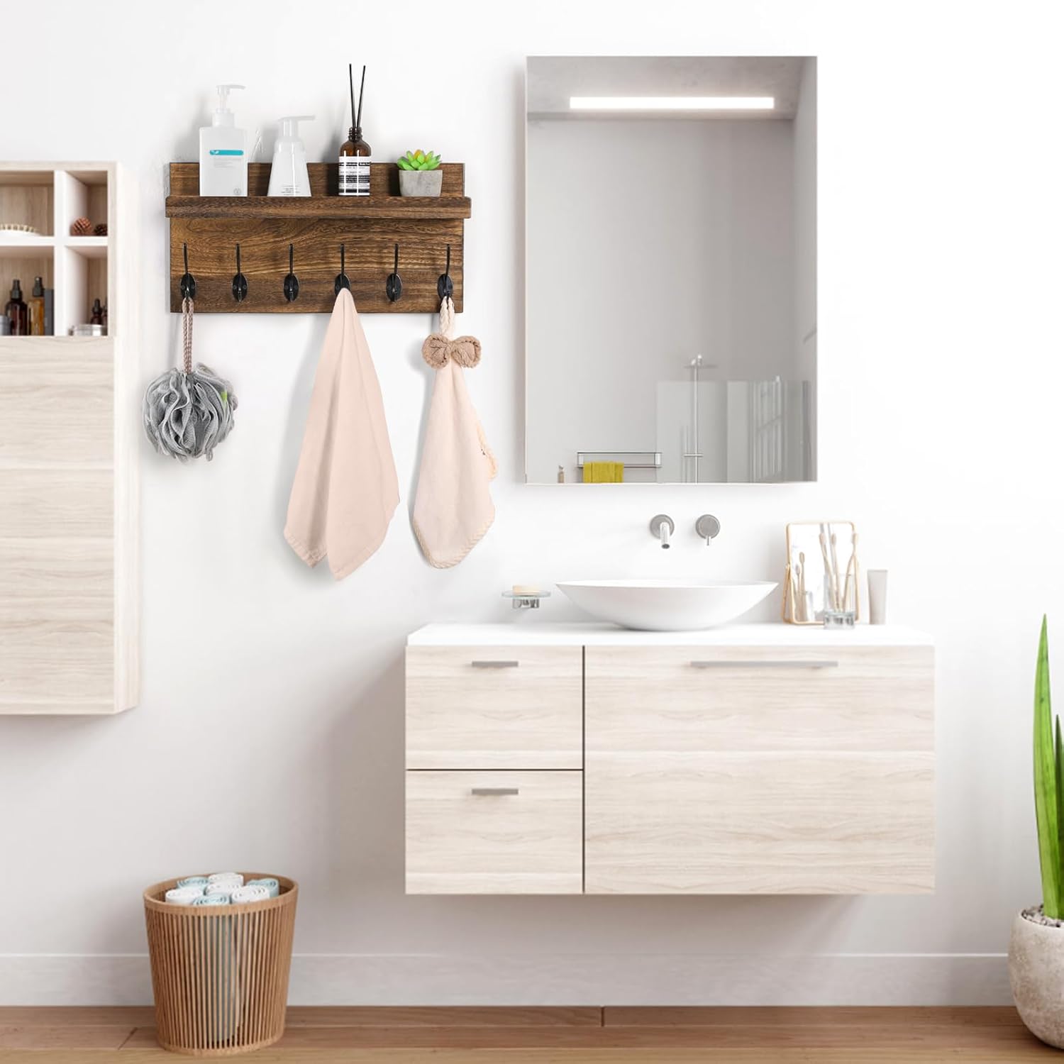 - Suitable for Various Spaces: Whether it's the entrance, study room, living room, kitchen, bathroom, garage, or laundry room, our wall shelf with hooks are versatile and suitable for any area in need of organization and storage. Add a touch of functionality to every corner of your home.