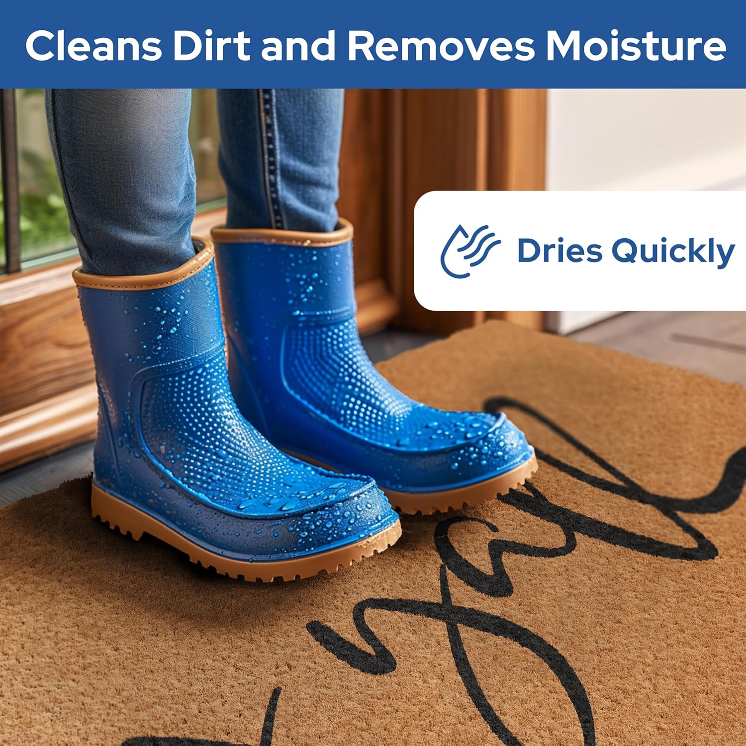 - Made of Durable Coir - Our doormats are made of 100% coconut coir fibers, one of the strongest and most durable natural fibers on earth. The high-quality coir used in its construction ensures that it will maintain its shape and appearance, even with heavy use. Please note that light shedding may occur, as is common with all natural coir mats. Additionally, avoid completely soaking mat with water as this could lead to natural coir runoff.